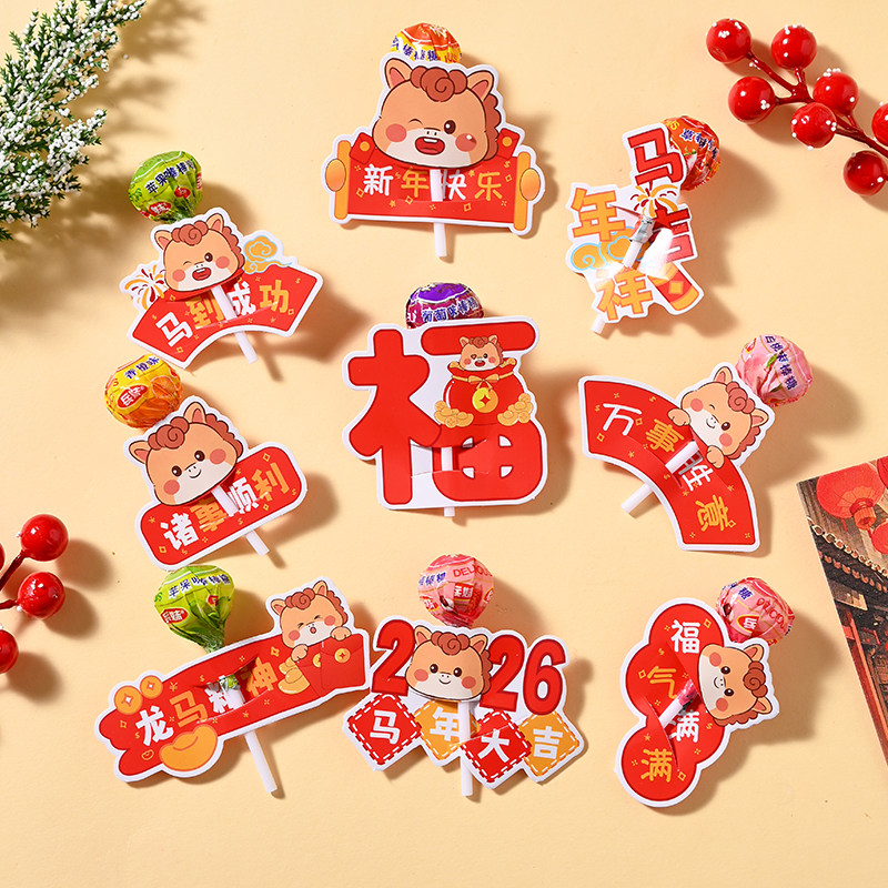 📚 新年礼物棒棒糖装饰插卡马年祝福纸卡幼儿园学校教育机构活动装扮