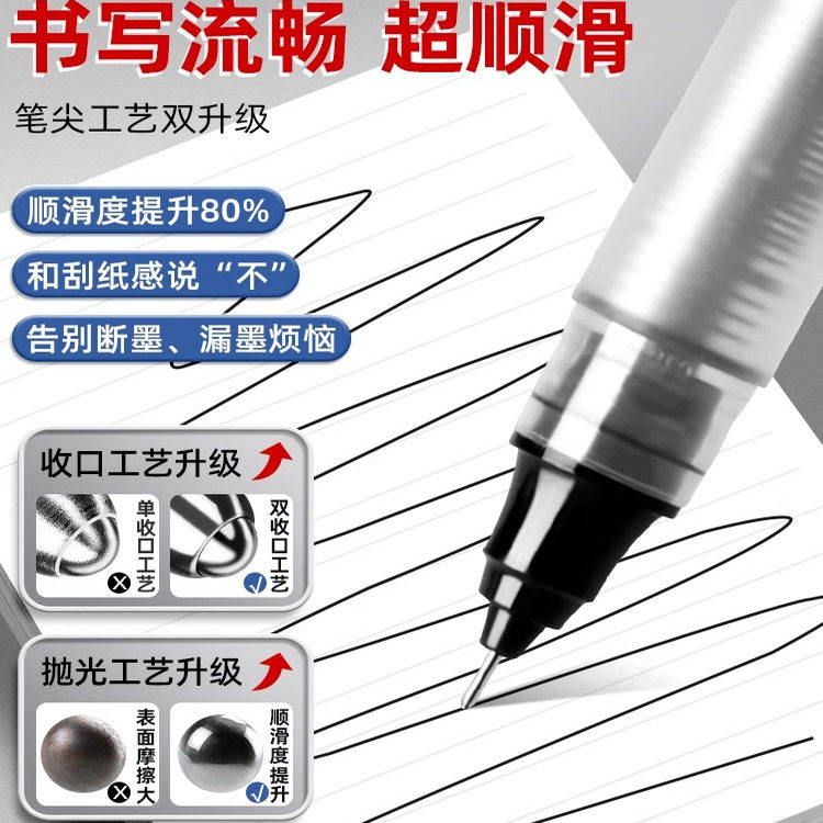 📚 晨光中性笔黑笔直液式走珠笔正品官方旗舰店速干顺滑学生水笔黑色水性碳素直液笔签字笔圆珠笔红笔考试刷题笔