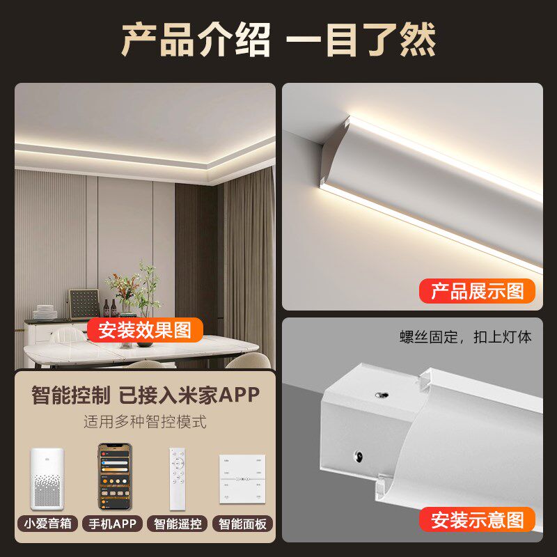 📚 免开槽发光石膏线灯带天花明装线形灯吊顶客厅顶角线阴角线条灯槽