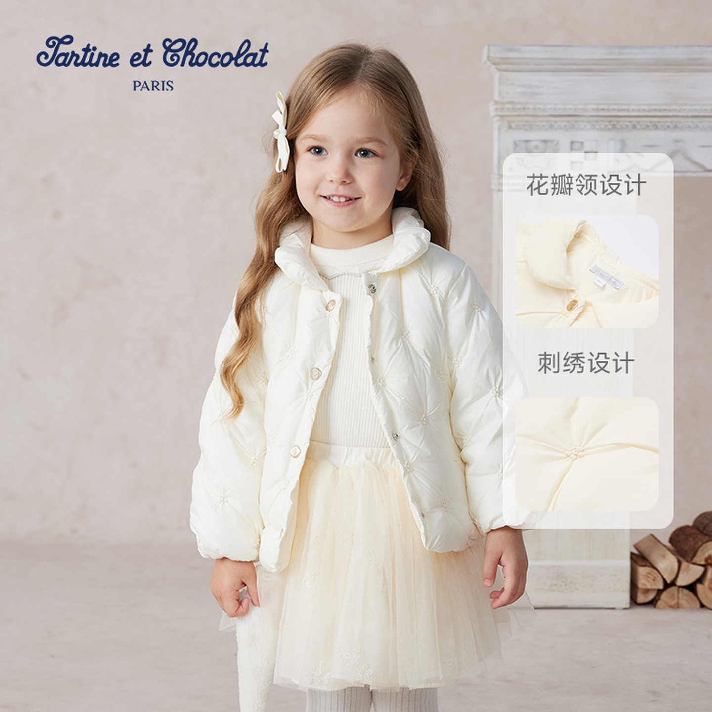 鹅绒法国女童tartineetchocola羽绒服