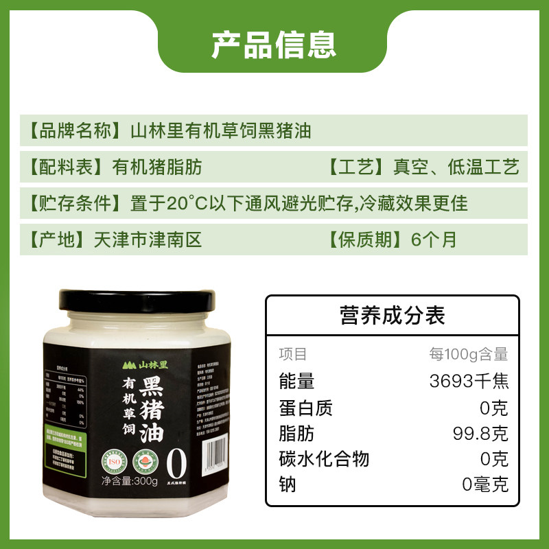 📚 有机猪油天花板 山林里有机草饲黑猪油有机认证健康辅食烹炒