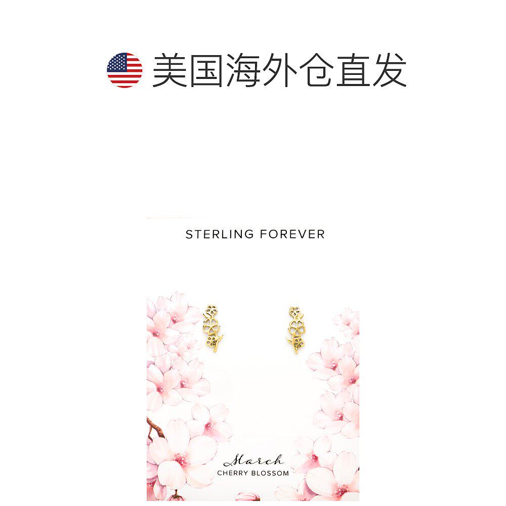 📚 sterling forever纯银 Birth Flower 耳环耳钉 - 三月 - 金 【美