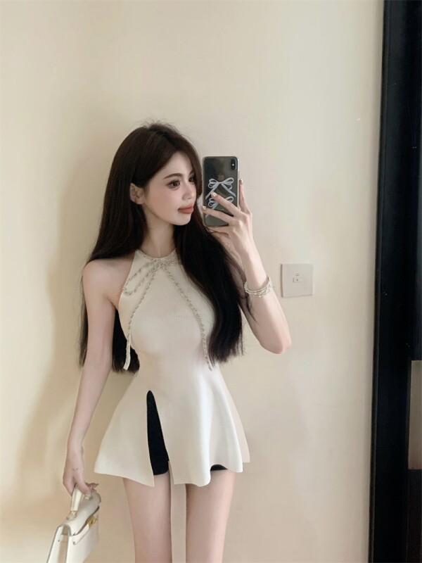 99¥ CA381 1UehUMVnj2n¥ https://m.tb.cn/h.7CMOJWl 实拍实价 纯欲辣妹重工镶钻蝴蝶结气质优雅赫本吊带裙小黑裙短裙 --------------------- 【原售价】45.8元 【现售价】45.8元。