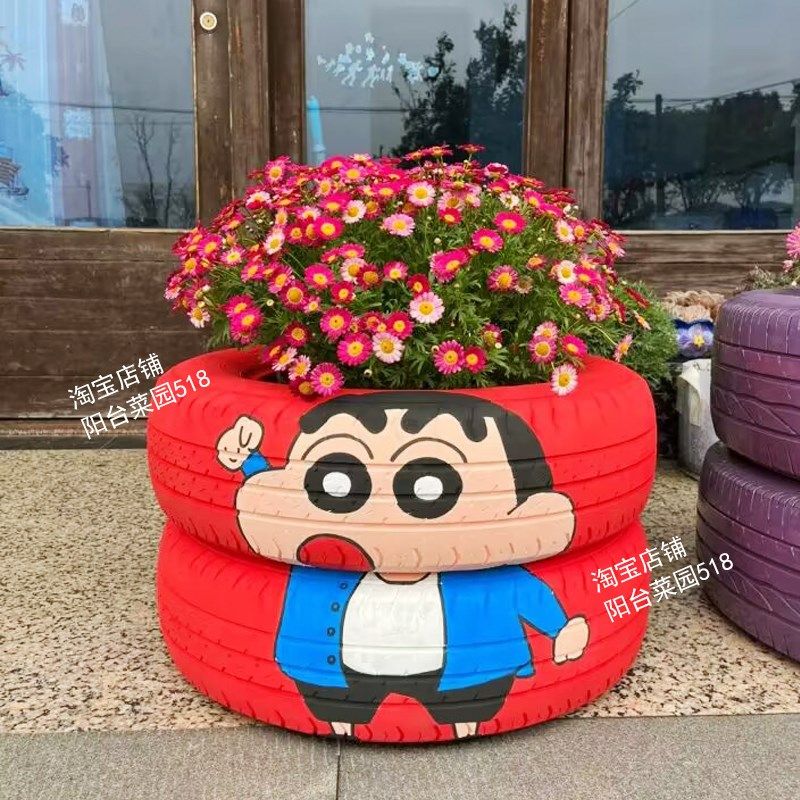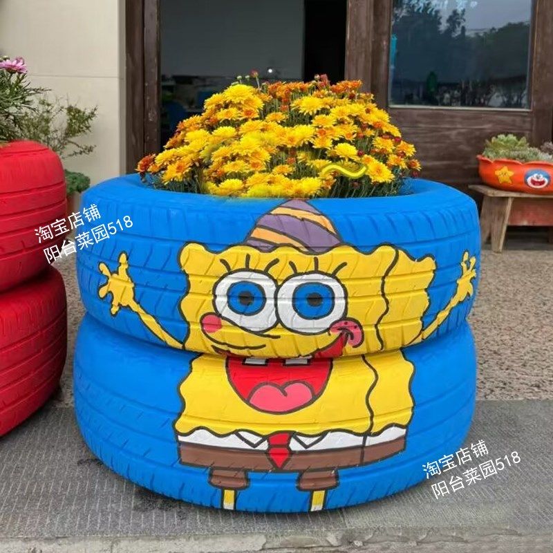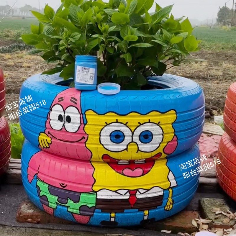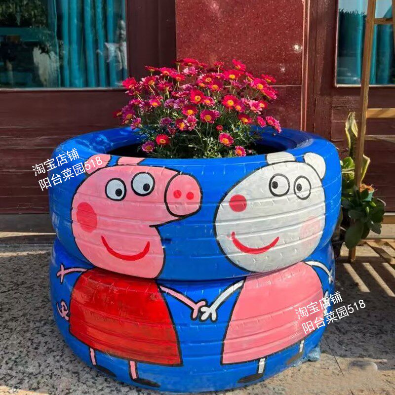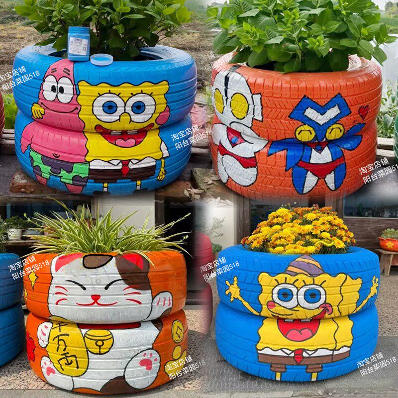 📚 轮胎手绘花盆废旧轮胎改造艺术花盆手工制作创意花盆DIY花盆