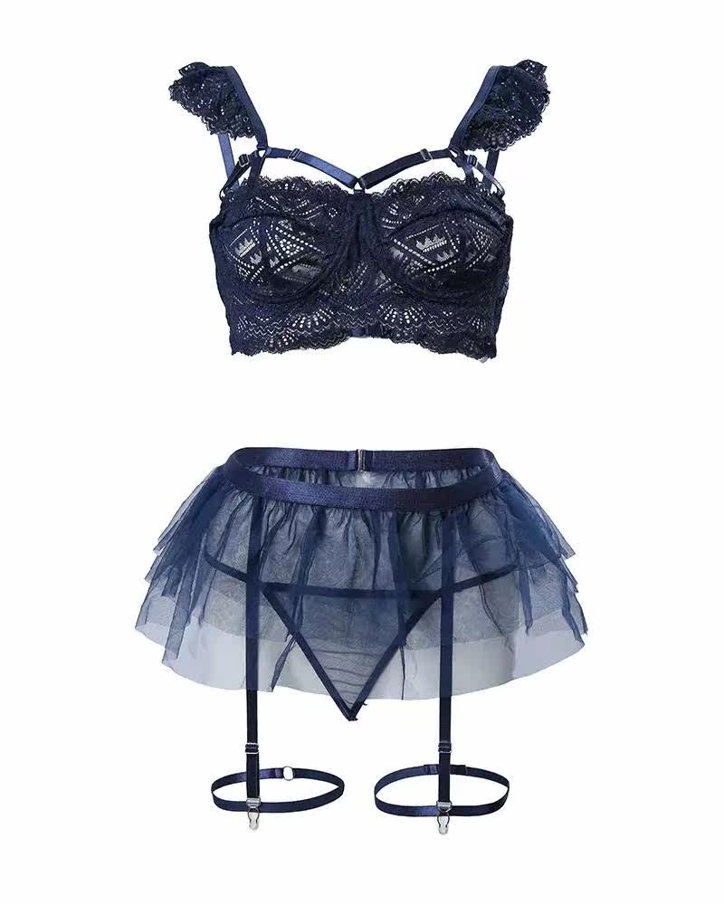 📚 蕾丝拼接网纱内衣套装 Sheer Mesh Lace Garter Lingerie Set