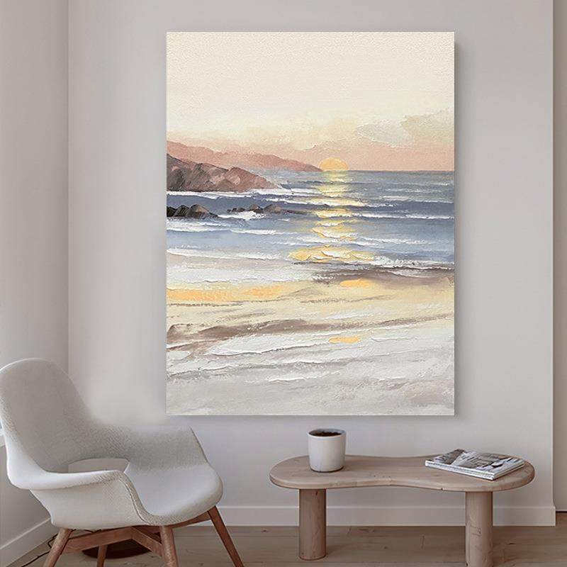 📚 日出东方玄关油画装饰画现代简约客厅卧室挂画风景纯手绘肌理画