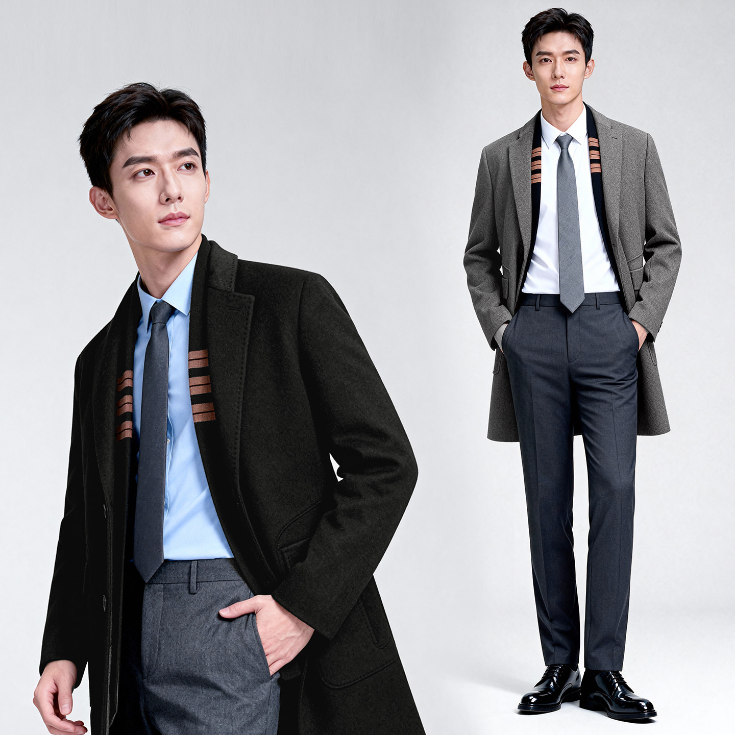 📚 【可拆卸羽绒马甲】圣得西双面毛呢大衣男秋冬新款教父羊毛外套