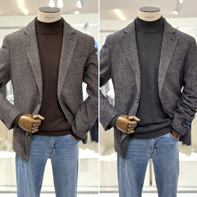📚 2025年冬季新款EDITION棕色藏青色格纹两粒单排扣休闲西服外套