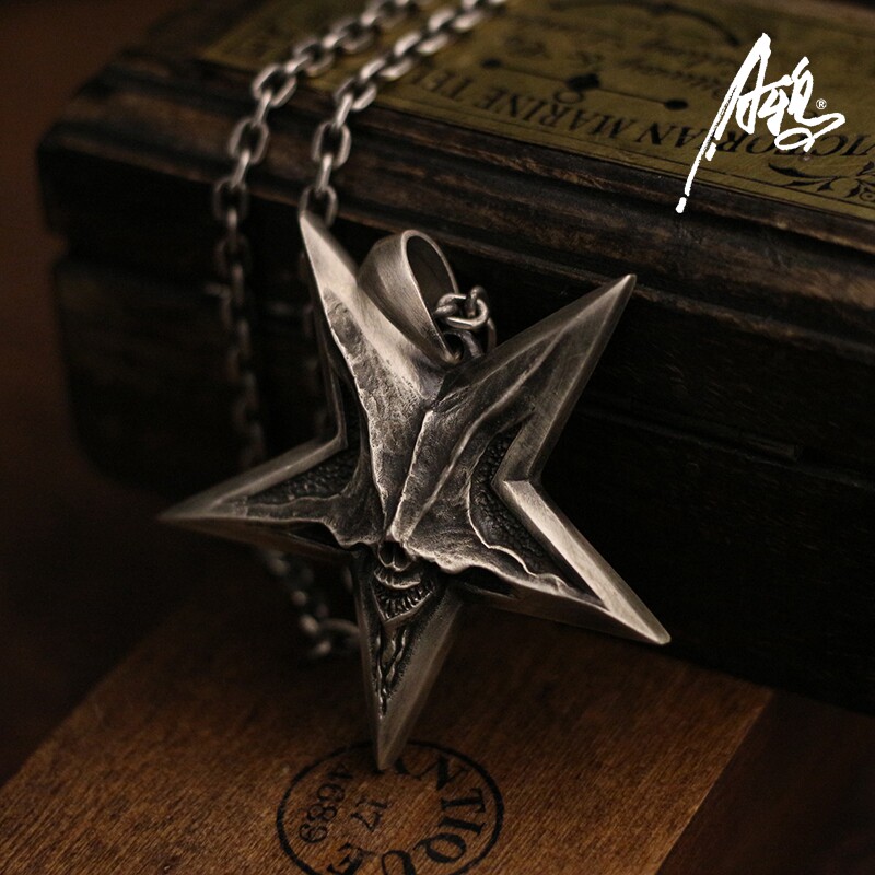 📚 A鸦原创五芒星手工地狱之撒旦的微笑925纯银个性男款实心吊坠项链