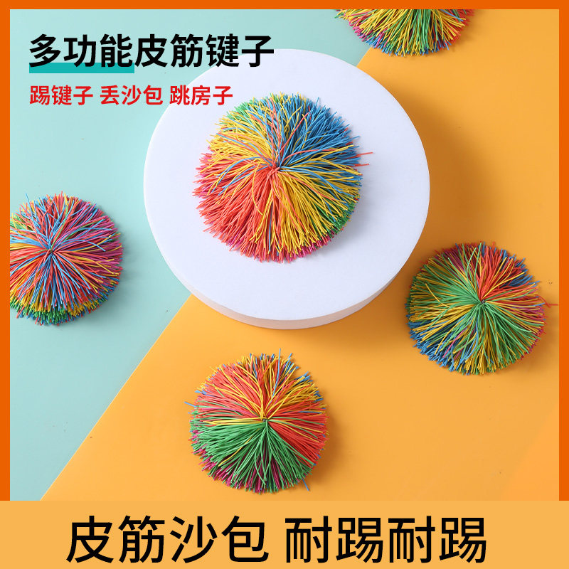 📚 多功能小学生皮筋毽子沙包儿童彩色橡胶丝毛毛球幼儿园踢毽皮筋球