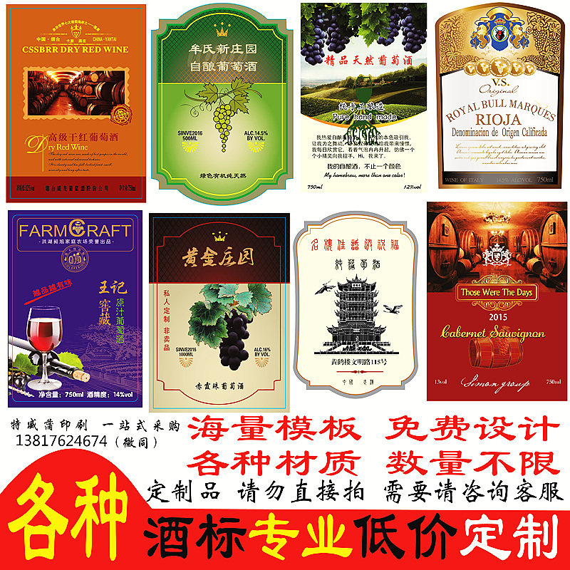 📚 定制酒标签纸酒贴酒商标酒说明瓶贴瓶标不干胶贴纸酒贴纸设计定做