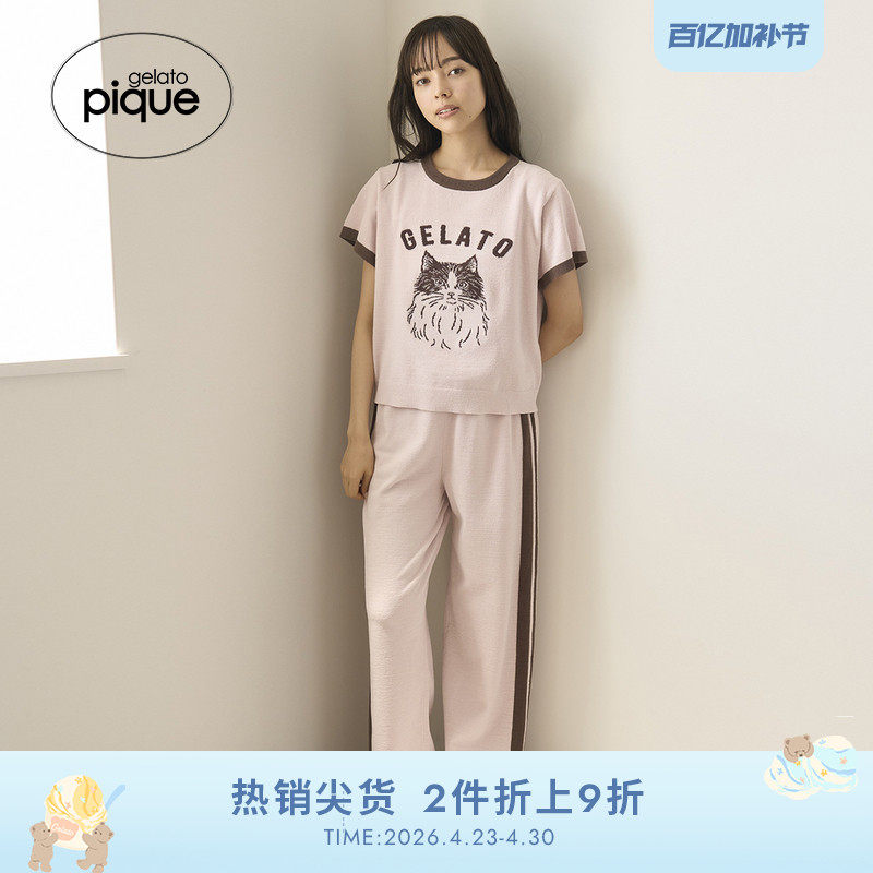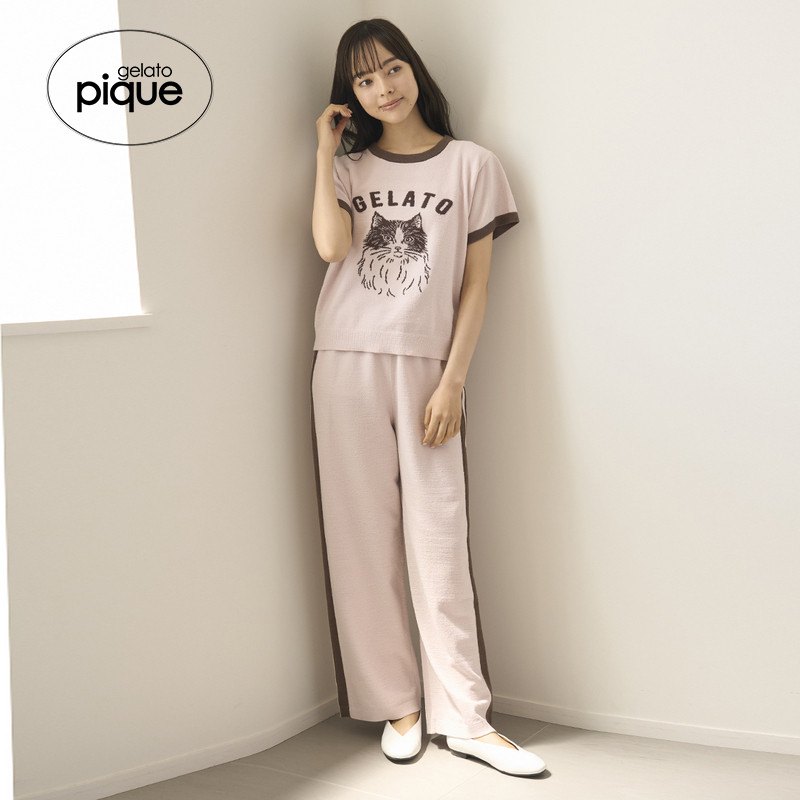 📚 gelato pique25秋冬新品女撞色侧条系带针织长裤睡裤PWNP254051