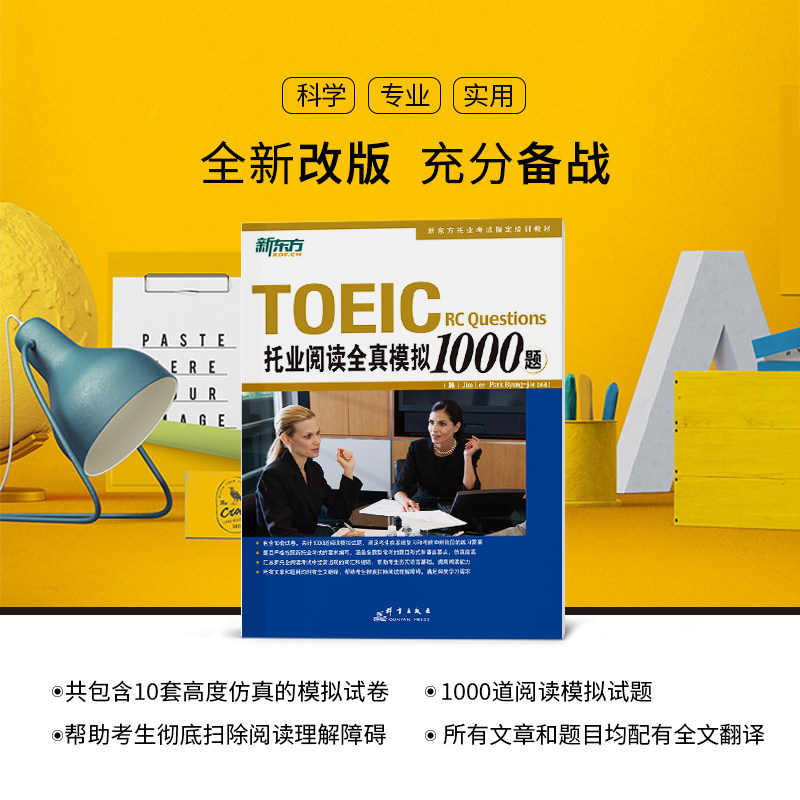 📚 【新东方官方旗舰店】托业阅读全真模拟1000题 TOEIC考试 阅读写作全真模拟书籍 英语官网