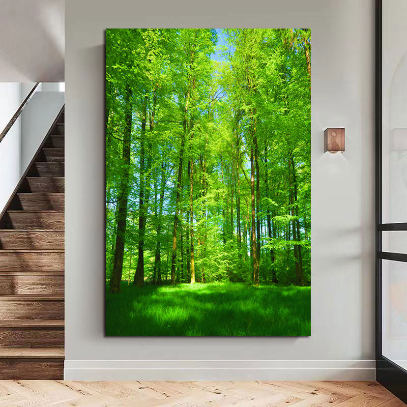 📚 森林海报墙贴大自然绿色护眼门贴风景画装饰挂画树木草地树林海报