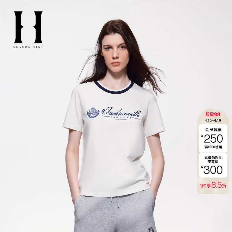 📚 绫致SEASON HIGH夏NFL联名胸前杰克逊维尔美洲虎队刺绣T恤女
