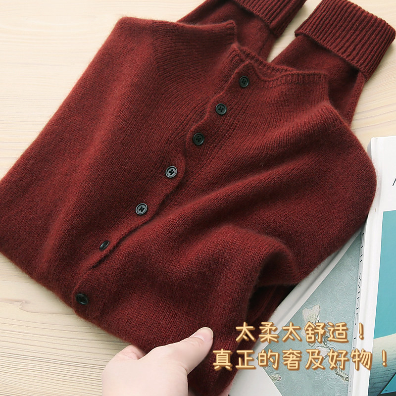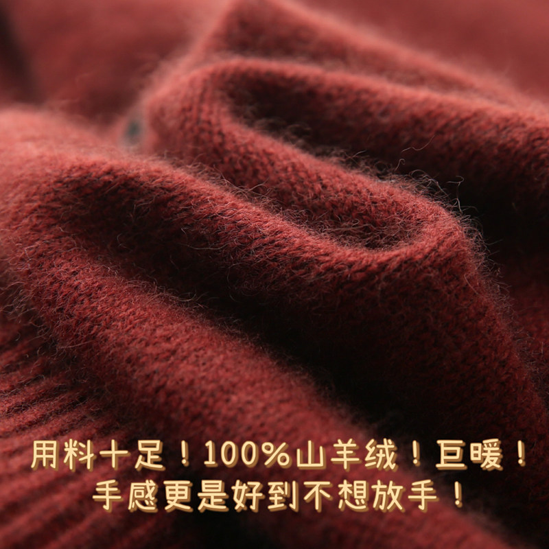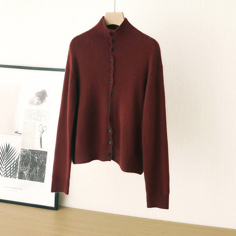 📚 浆果红~节日氛围感!显白半高领100纯羊绒针织开衫女立领打底上衣