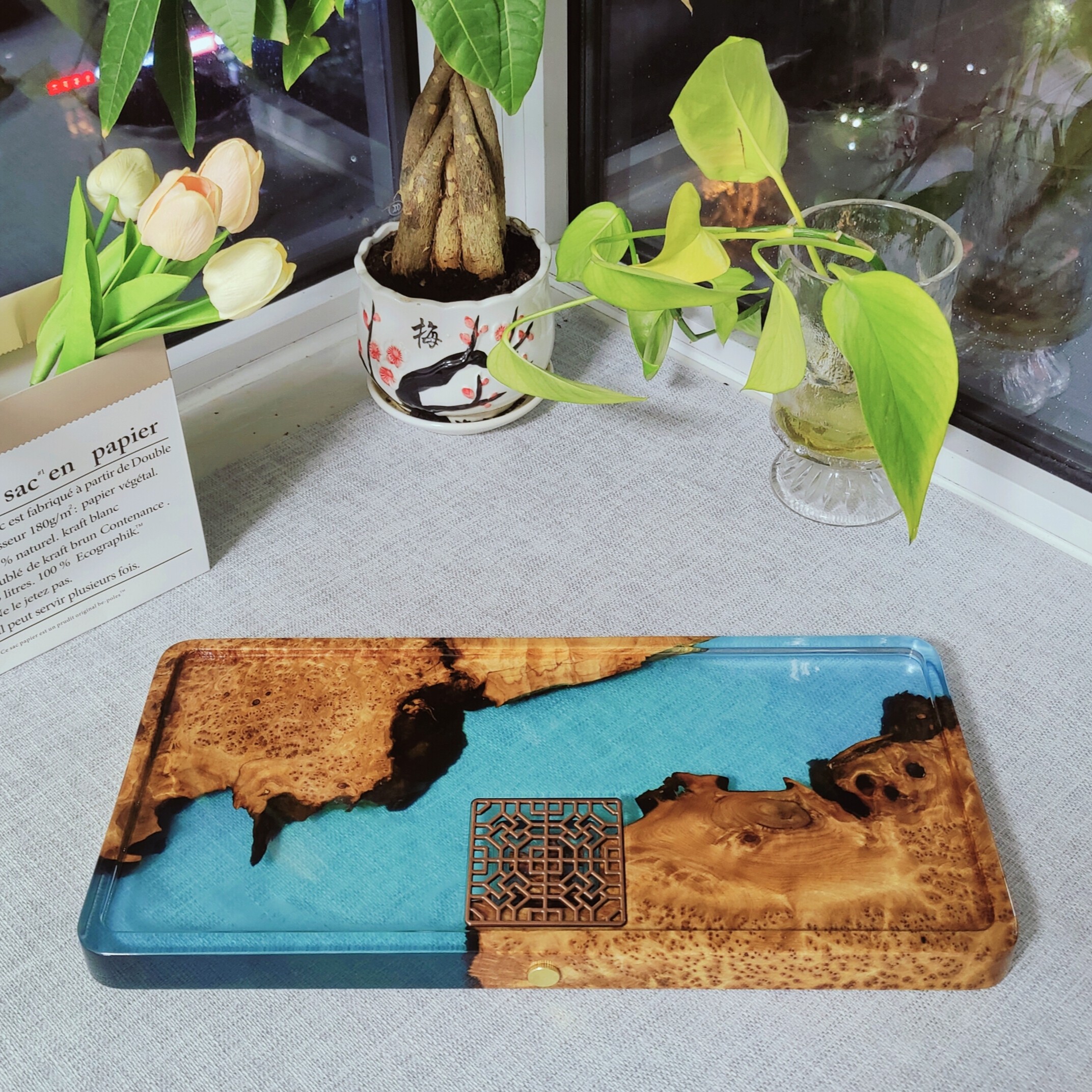 📚 环氧树脂茶盘金丝楠木干泡台托盘茶台轻奢小型家用功夫茶具茶海
