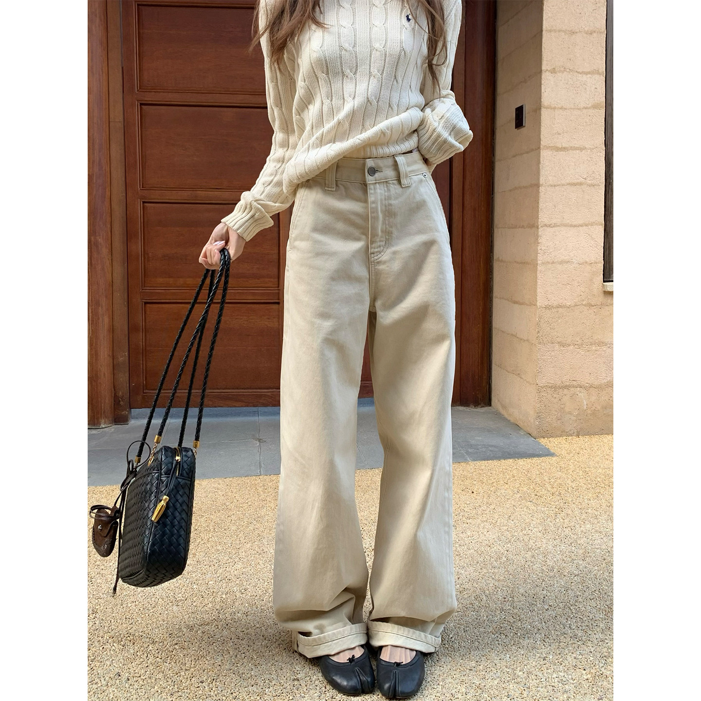 📚 留下 1992 早春新款复古高腰阔腿直筒裤重工水洗简约休闲牛仔裤女