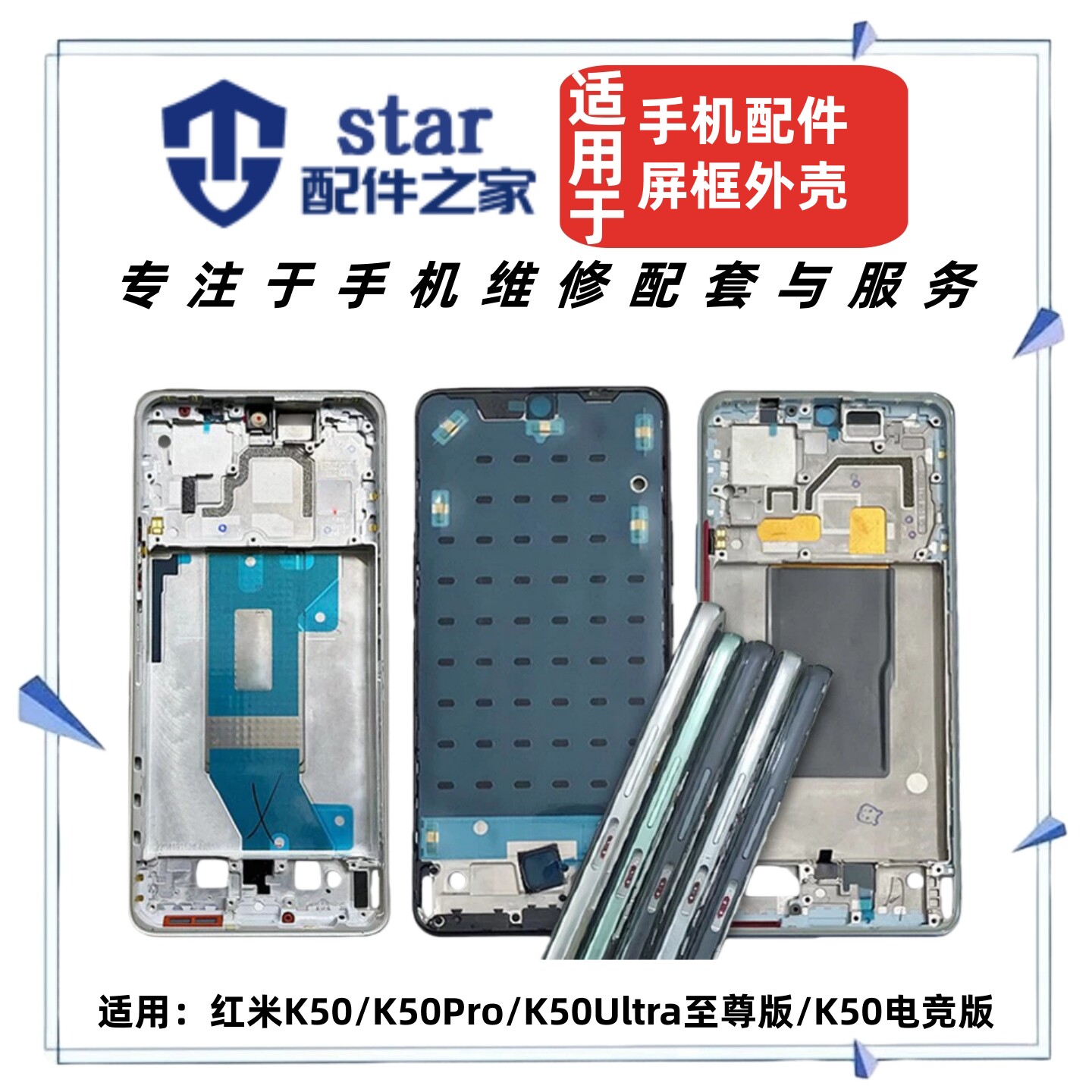 📚 适用红米K50 Pro Ultra至尊版 电竞版前壳中框屏幕边框外机壳A面