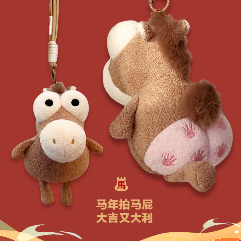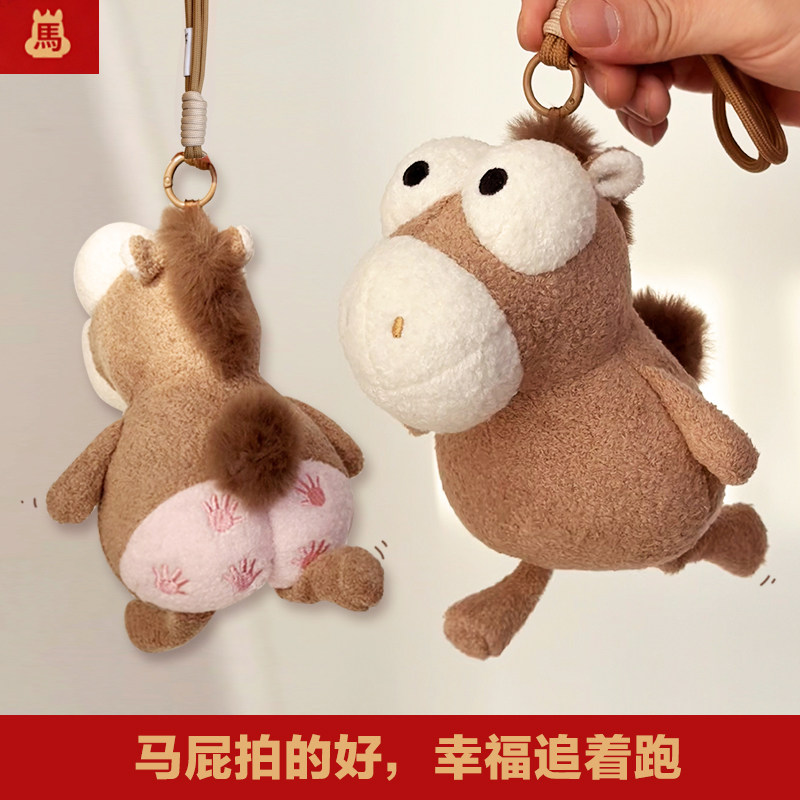📚 铭创优趣拍马屁抽象毛绒玩偶公仔钥匙扣挂件搞笑马年吉祥物送朋友
