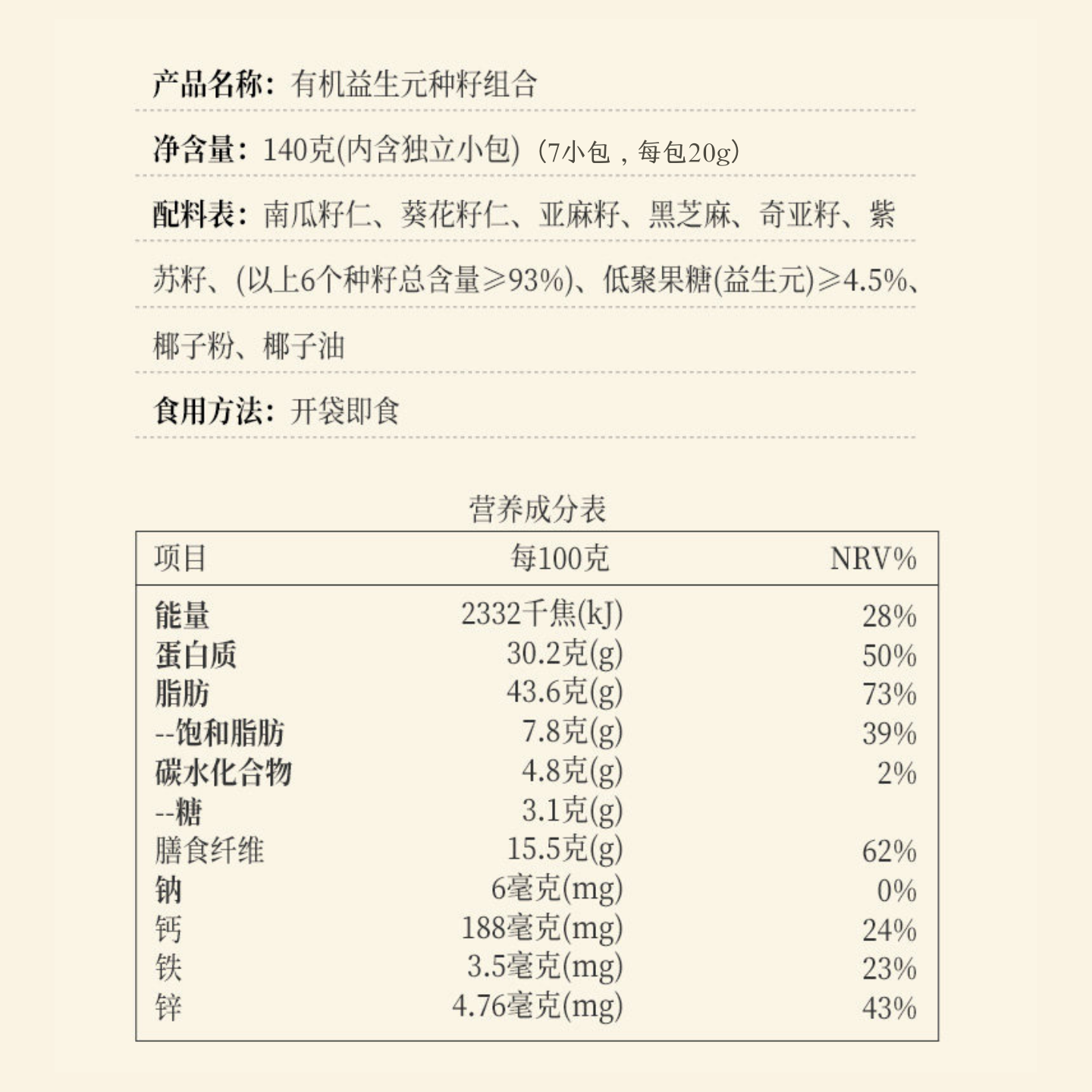 📚 木森严选有机混合种子南瓜子葵花子亚麻黑芝麻紫苏奇亚籽年货零食