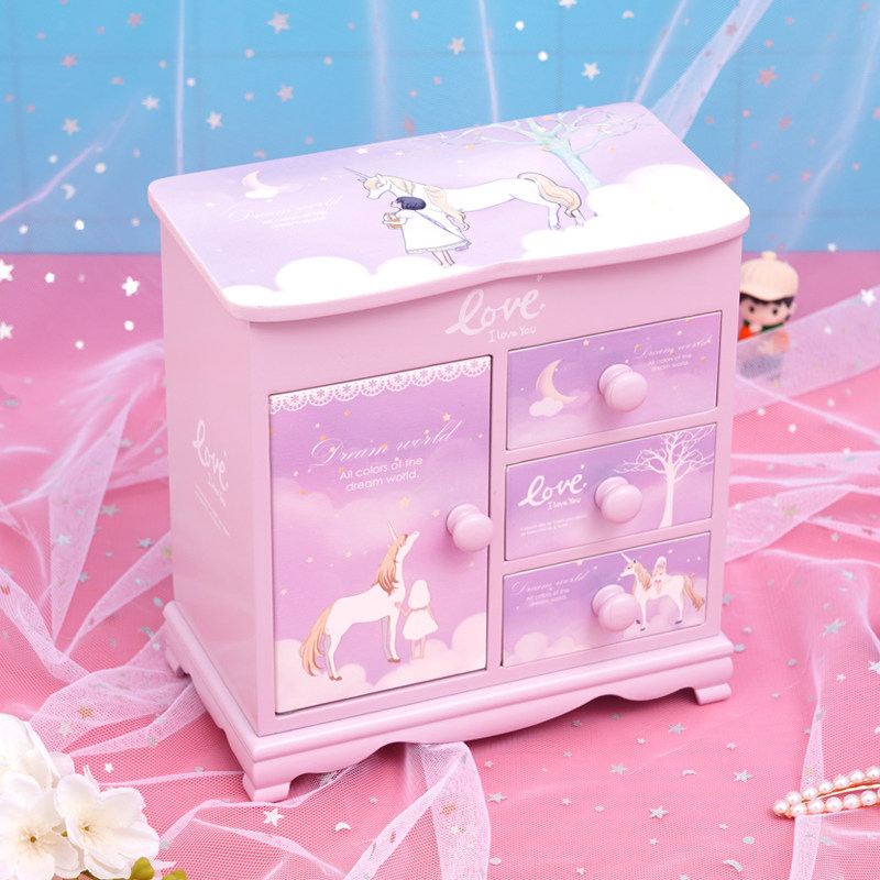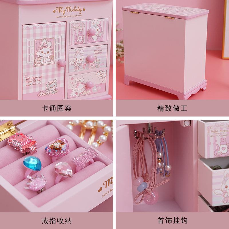 📚 儿童首饰盒化妆盒公主可爱木制多抽屉收纳盒小精致梳妆盒发饰收纳