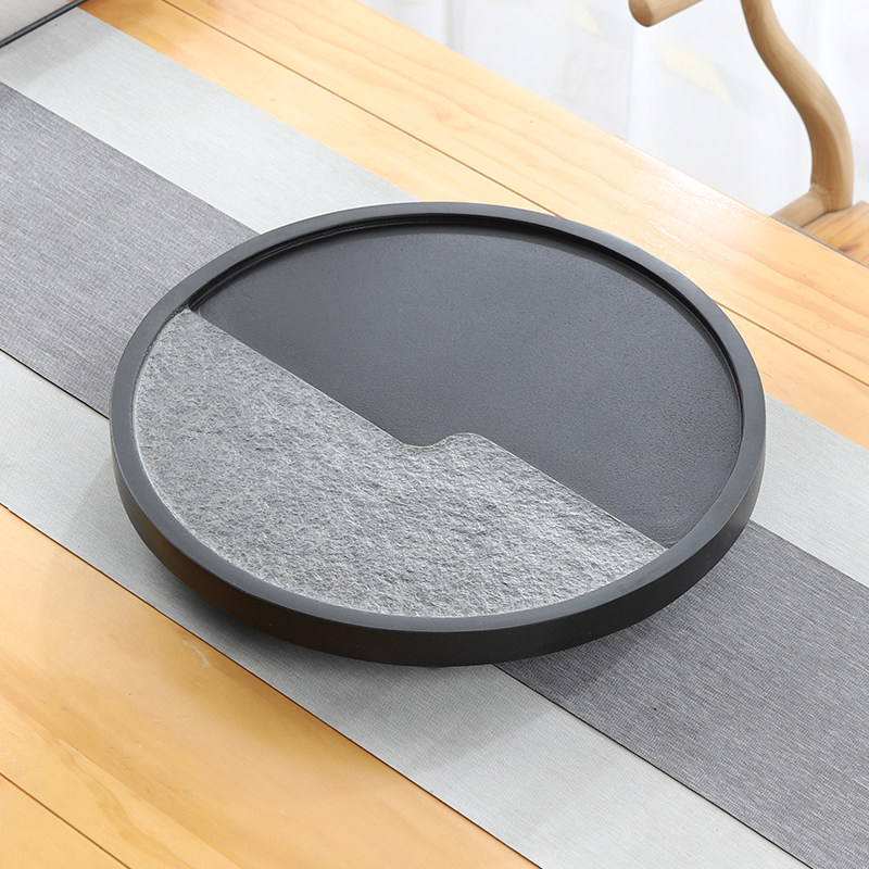 📚 天然乌金石茶盘圆形单盘石材一体整块石板家用客厅茶台石头茶托盘