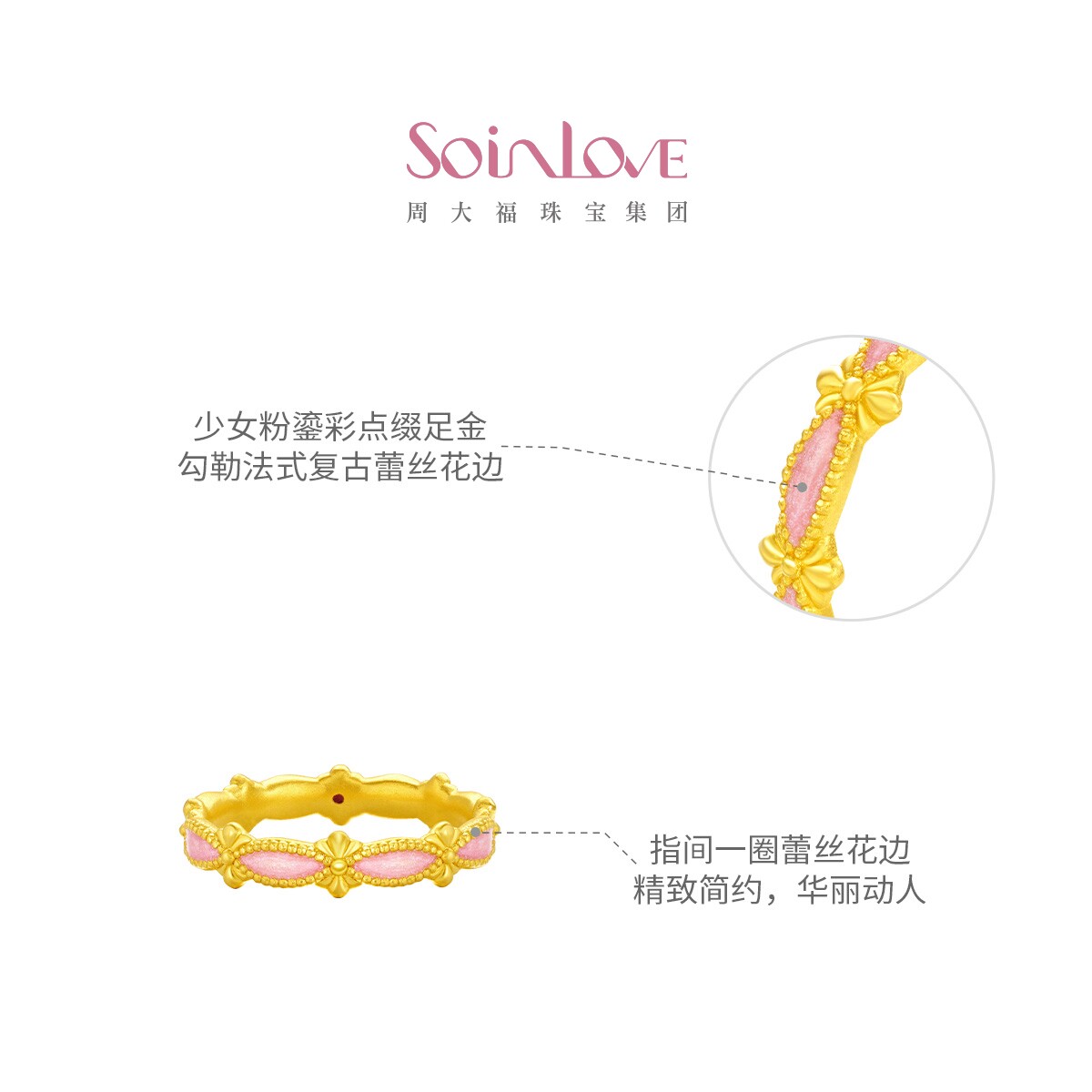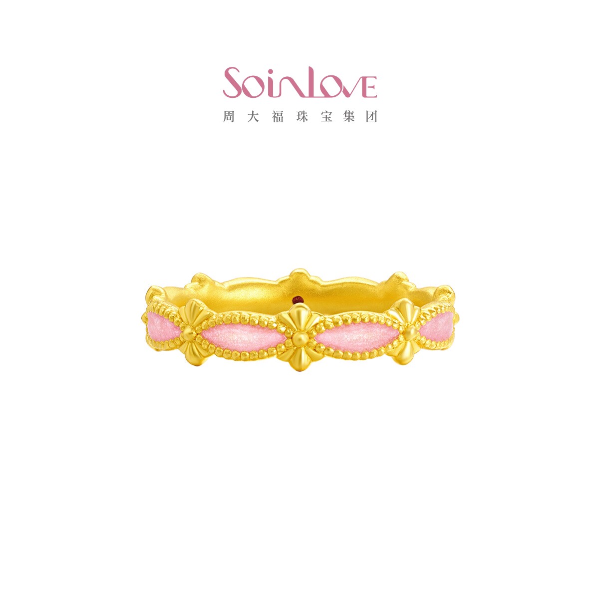 📚 周大福SOINLOVE「宝藏女孩」鸢尾花粉色蕾丝黄金戒指生日礼物