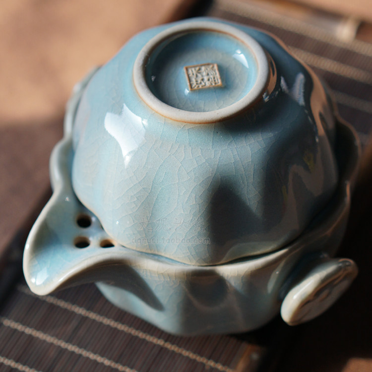 📚 汝州原产地大观汝瓷茶具 快客杯荷花壶 朱家汝窑 1壶1杯 一级品