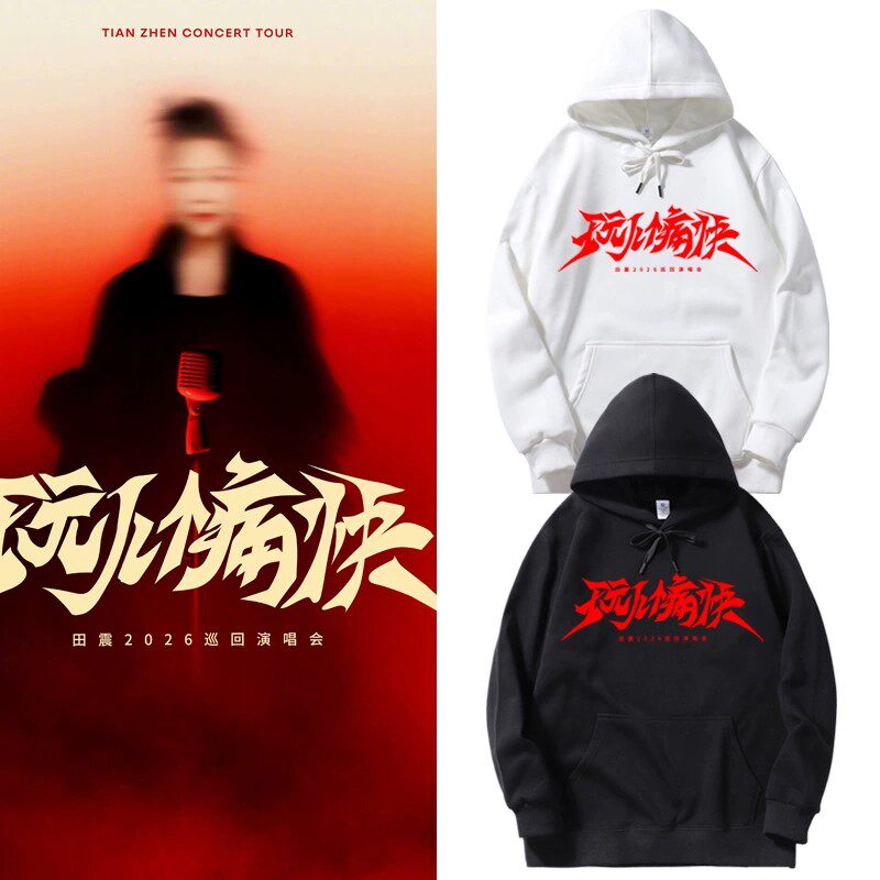 📚 田震玩个痛快2026演唱会同款周边连帽卫衣男女应援外套宽松上衣服