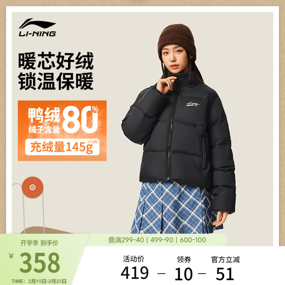 📚 李宁短款羽绒服女士官方新款运动潮流系列冬季鸭绒立领外套运动服