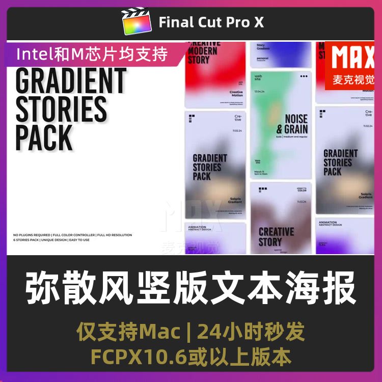 📚 final cut pro插件 弥散风背景文本排版短视频竖版海报fcpx模板