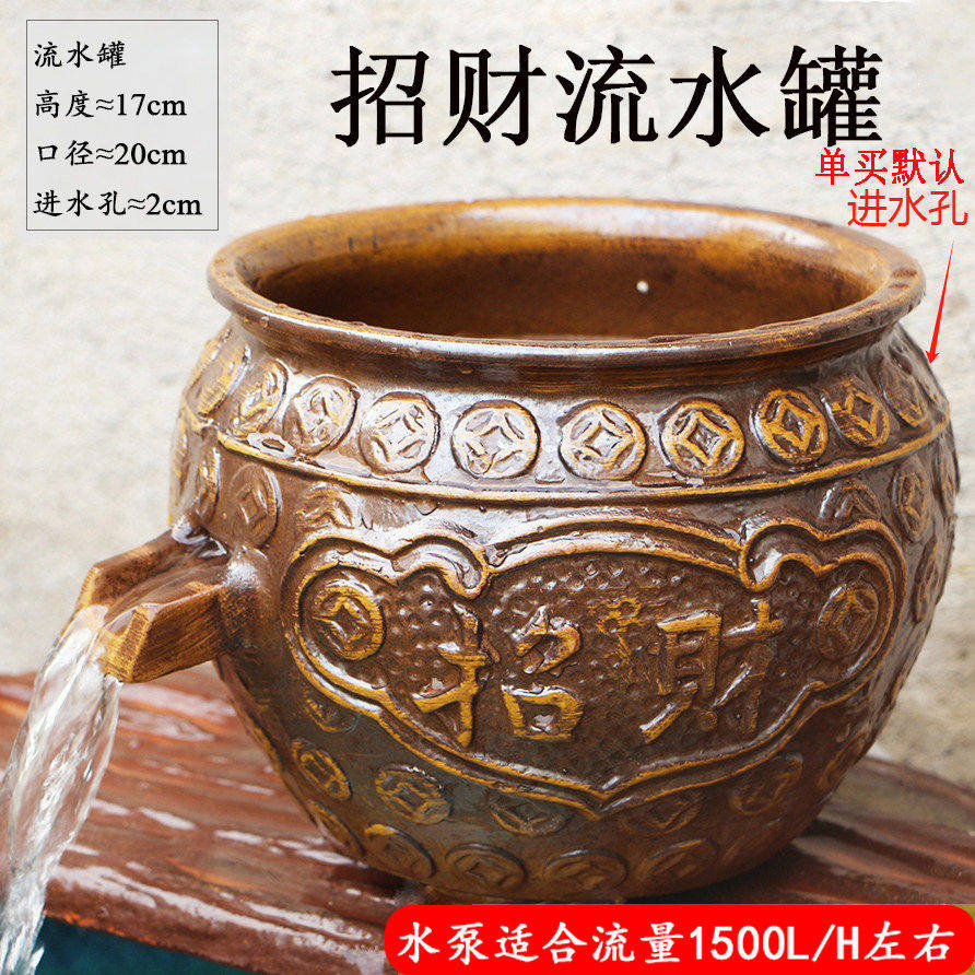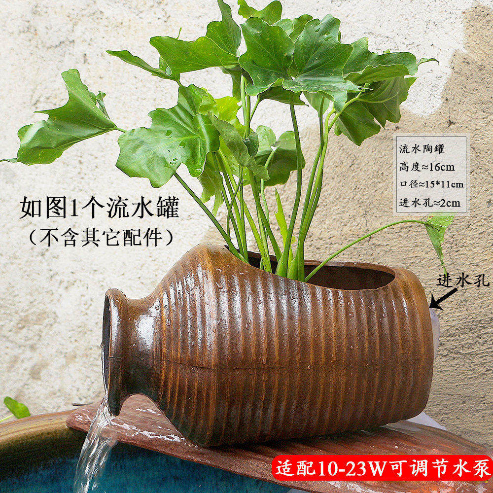 📚 大号陶瓷陶罐流水过滤生态养鱼低吸水泵复古水培盆瀑布鱼缸摆件高