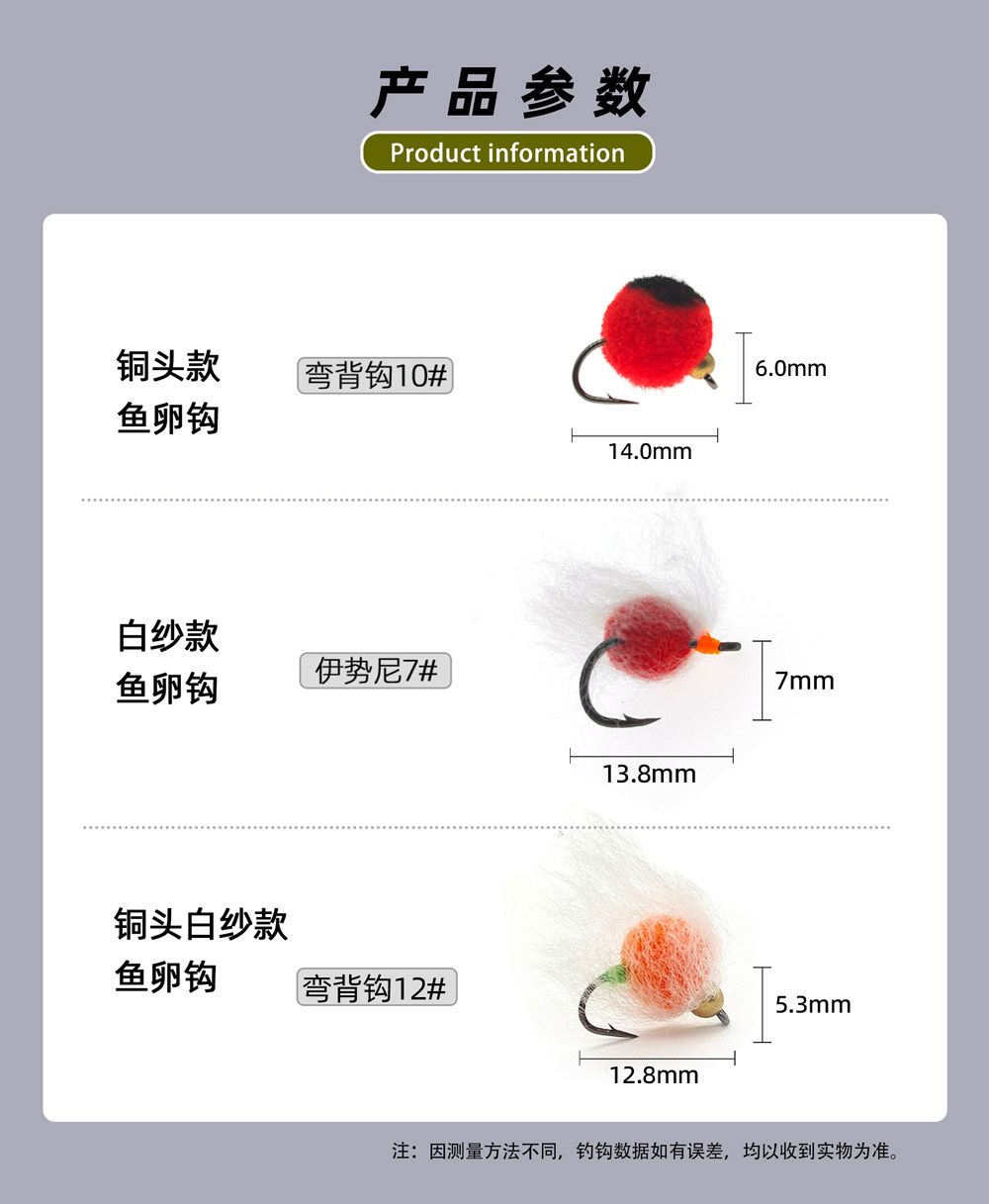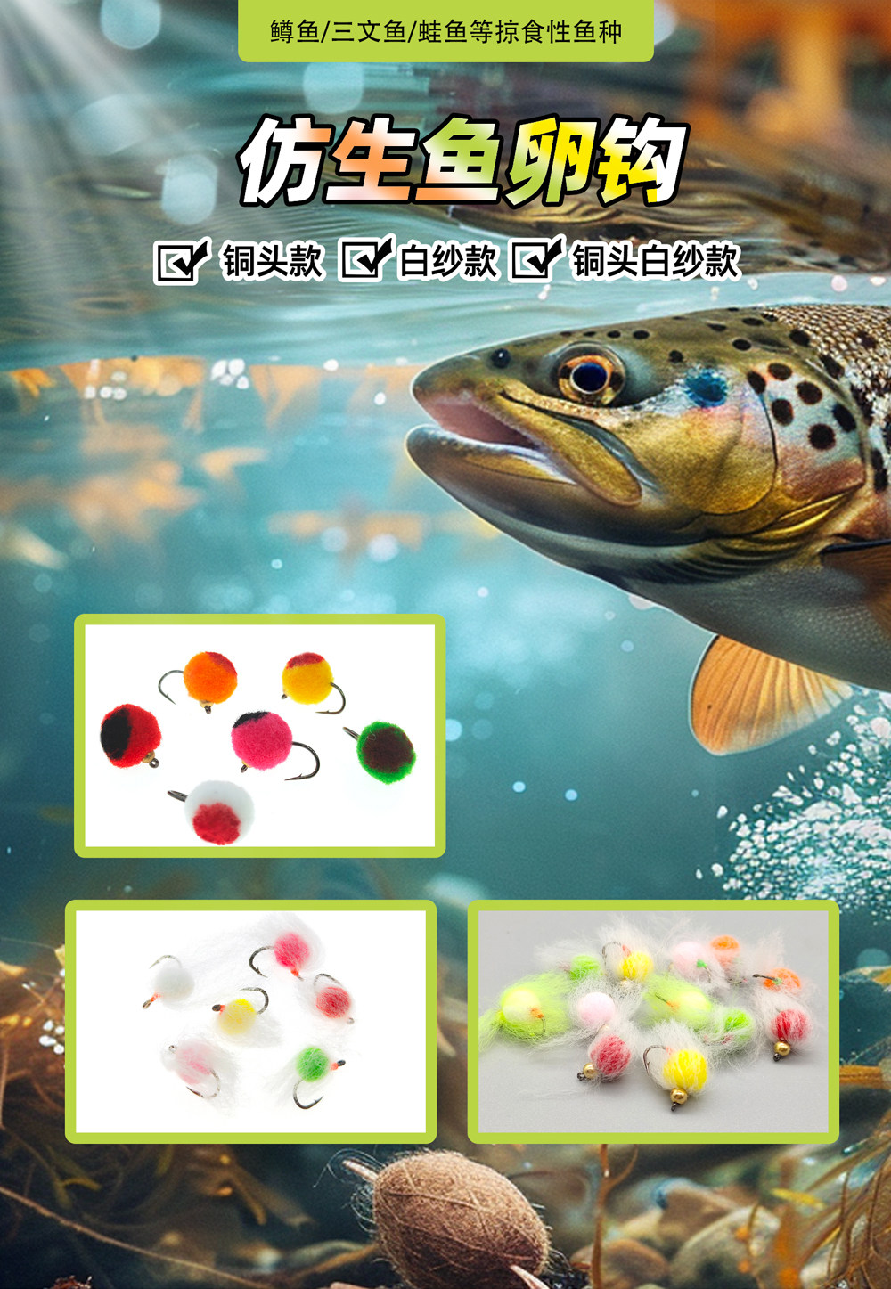 📚 仿生鱼卵钩 飞蝇钩飞钓路亚溪流黑坑马口三文鱼虹鳟鱼鲈鱼鲤鱼