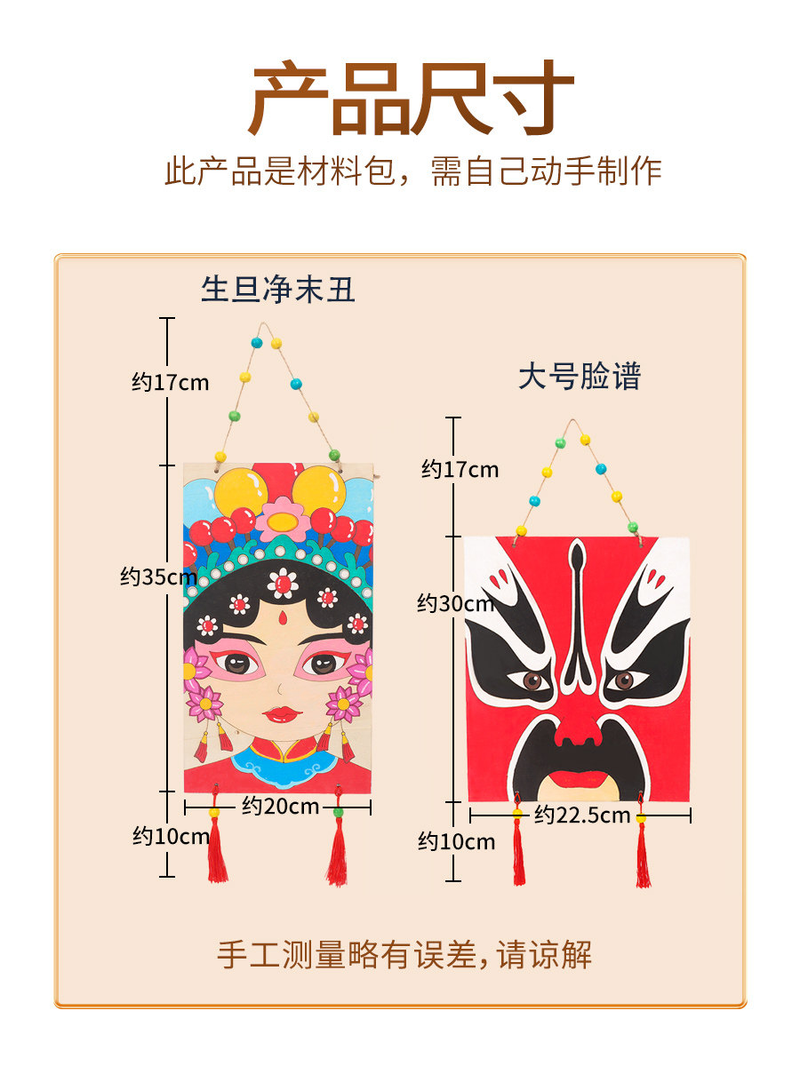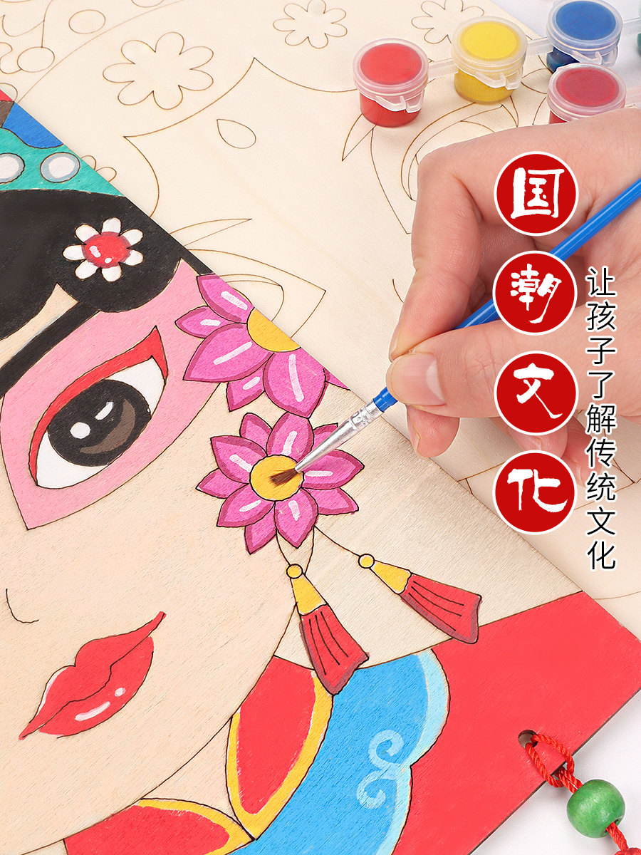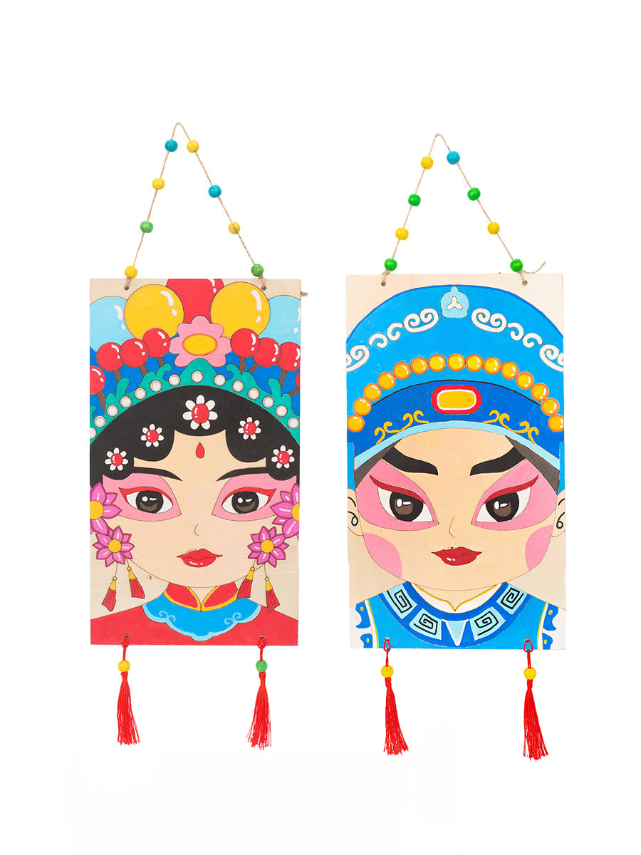 📚 中国风京剧脸谱diy手工涂色绘画木质制品挂饰吊饰幼儿园教室装饰