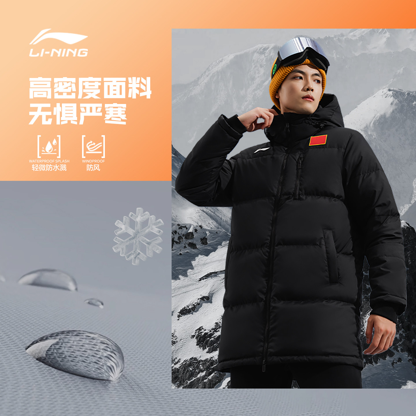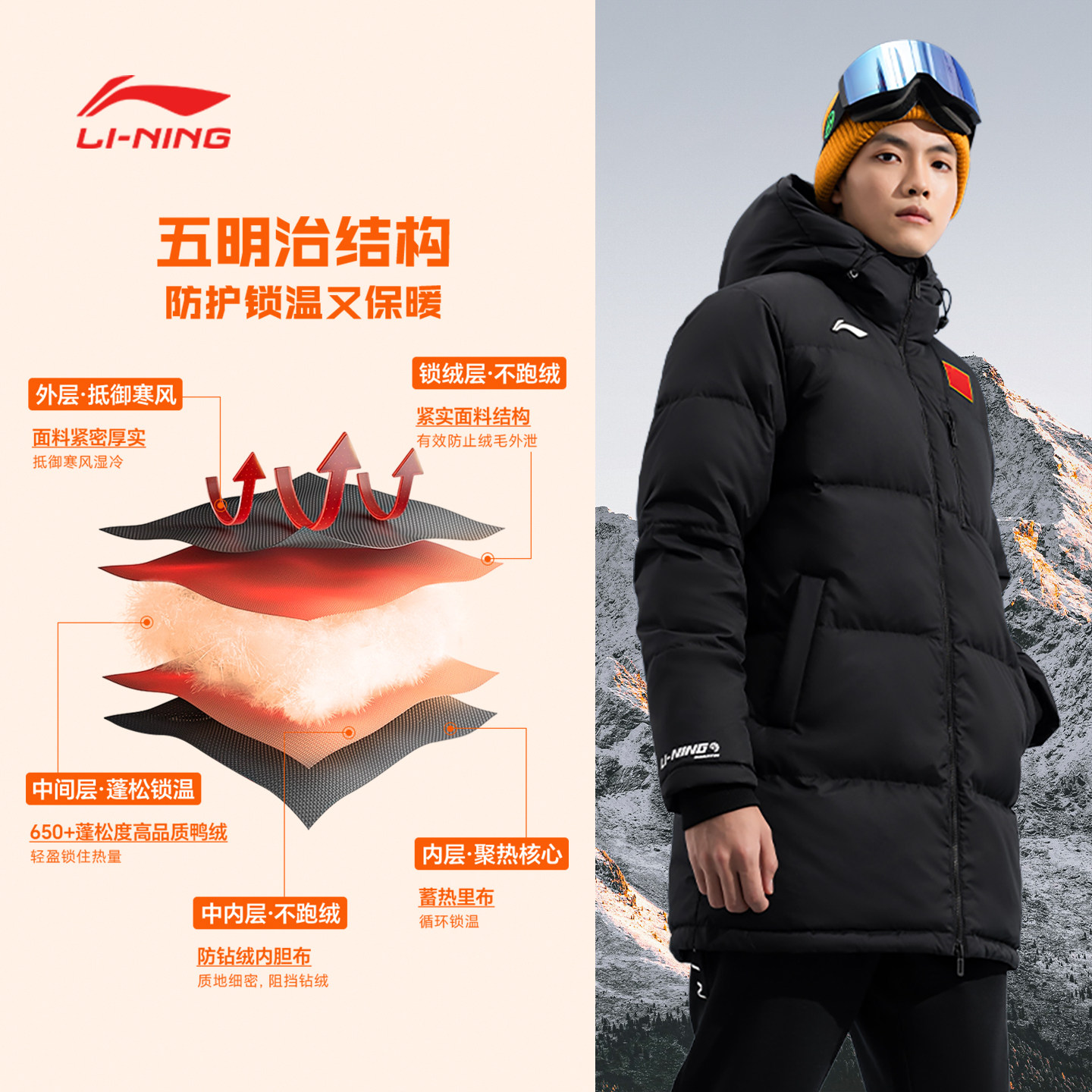 📚 李宁国旗版桑拿羽绒服男女款2025冬季新款防风保暖运动中长款外套