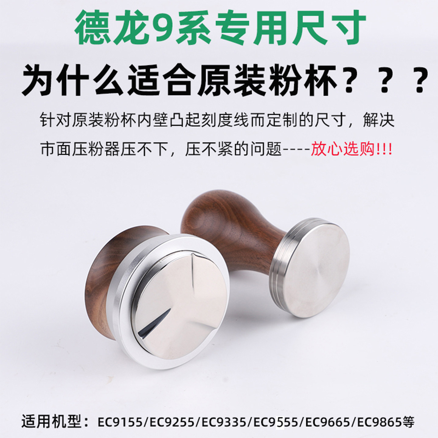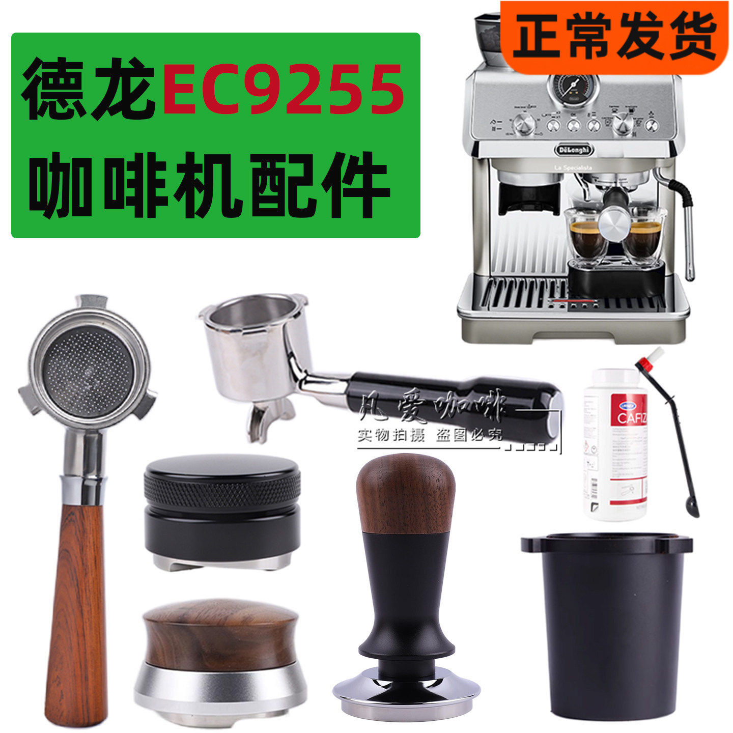 📚 德龙咖啡机配件EC9255无底手柄布粉器49mm压粉器咖啡机清洁除垢剂