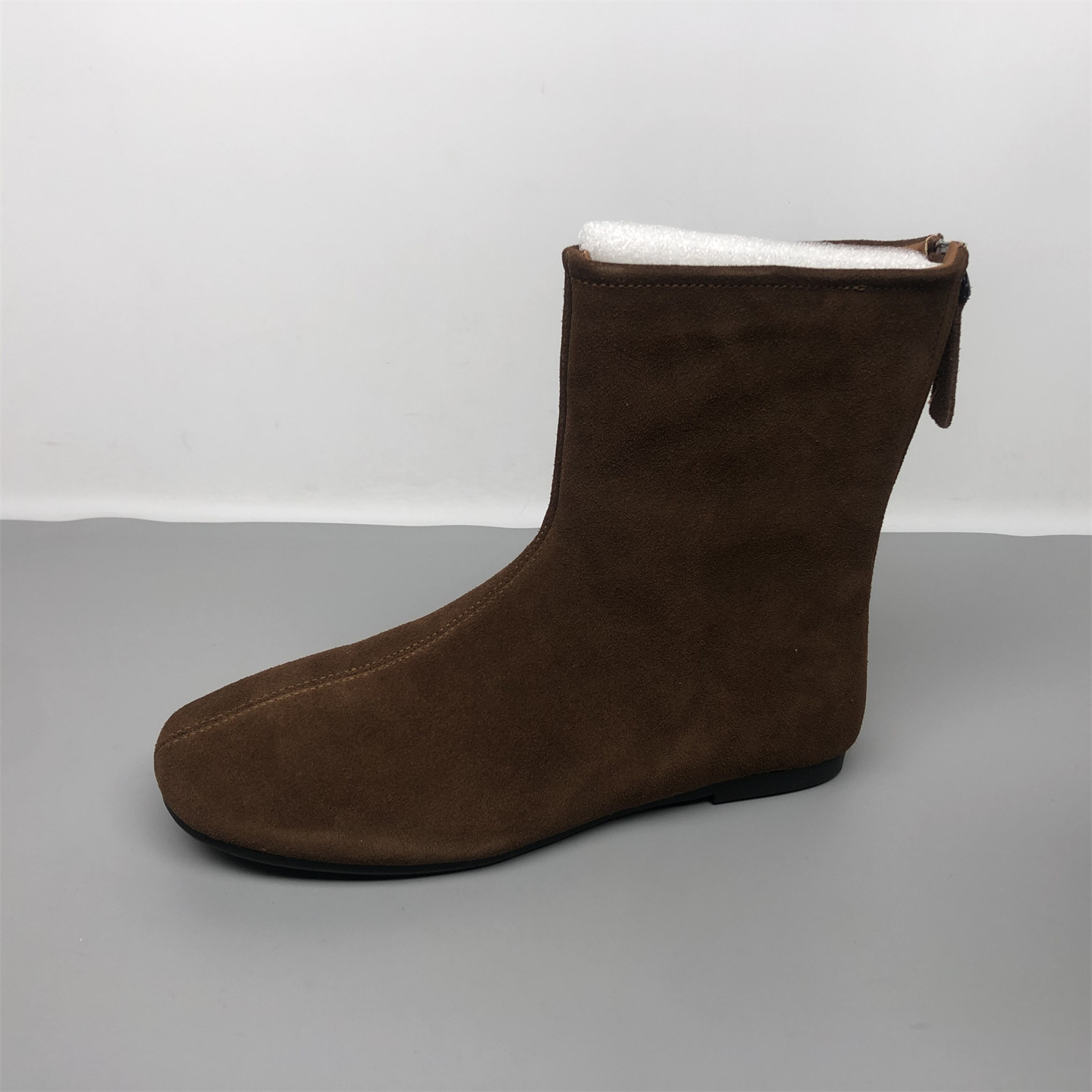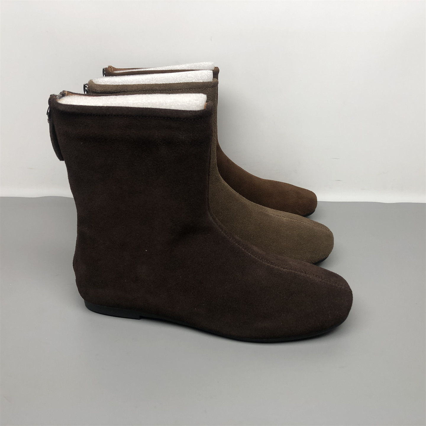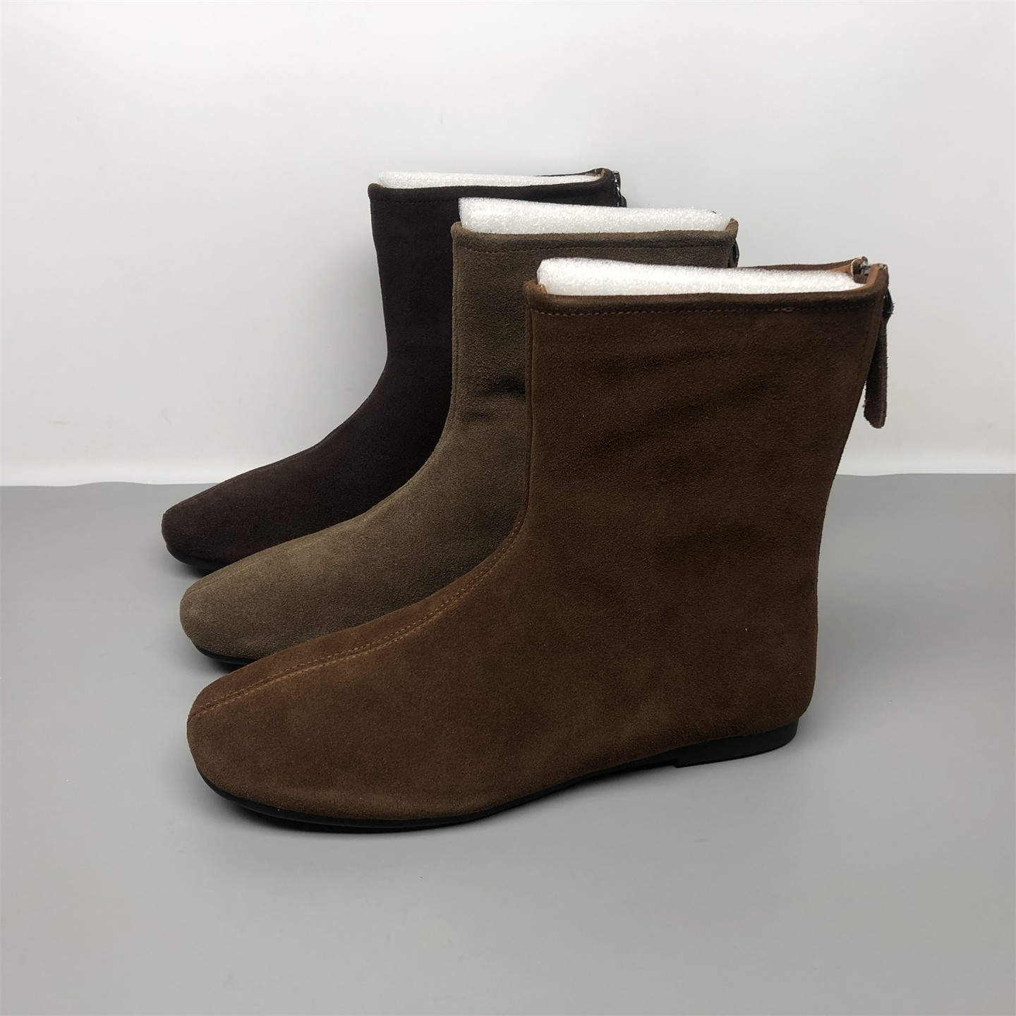📚 品牌撤柜真皮勃肯短靴女2025秋新款后拉链软底牛皮瘦瘦靴时尚单靴