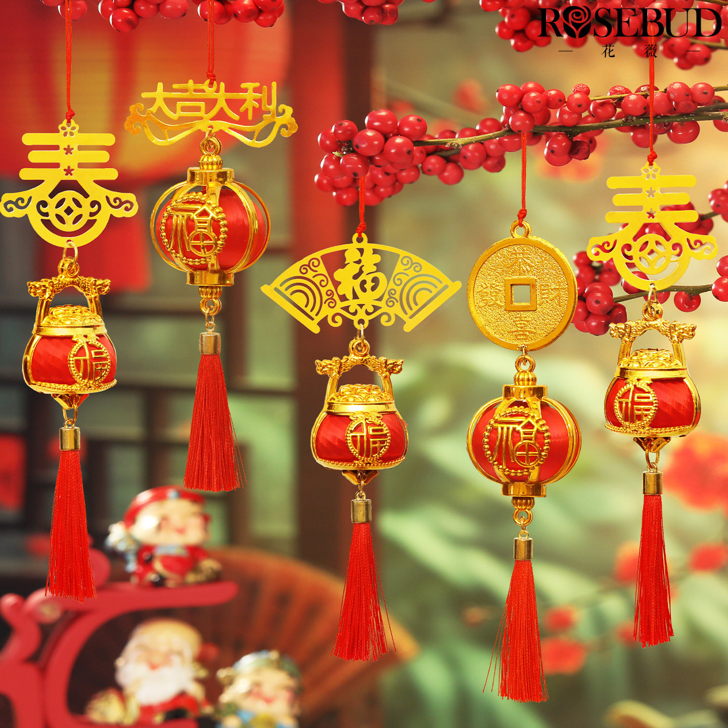 📚 马年春节灯笼挂件装饰过年元宵节树木绿植玄关装饰活动布置
