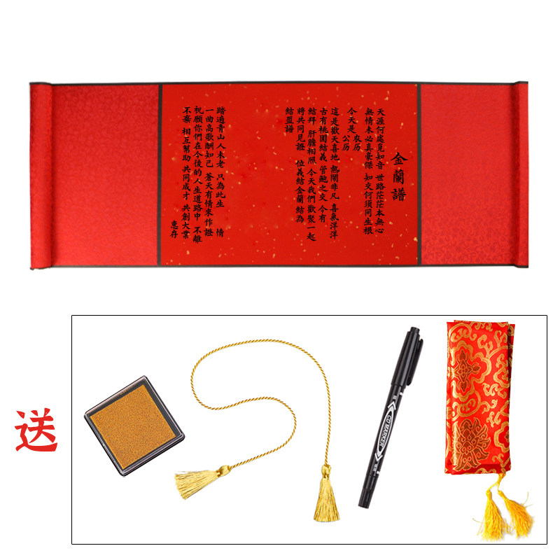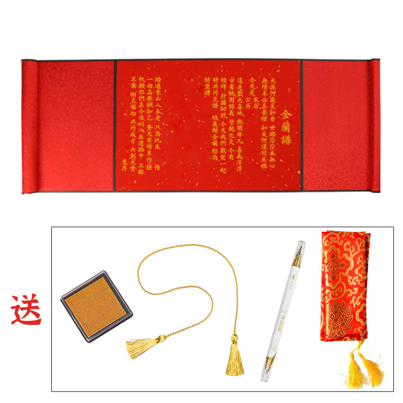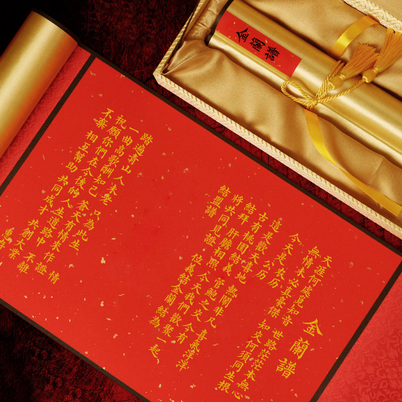 📚 高档金兰谱兄弟结拜帖结t盟帖结义帖古风手写空白卷轴万年红宣纸
