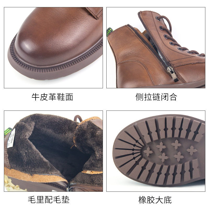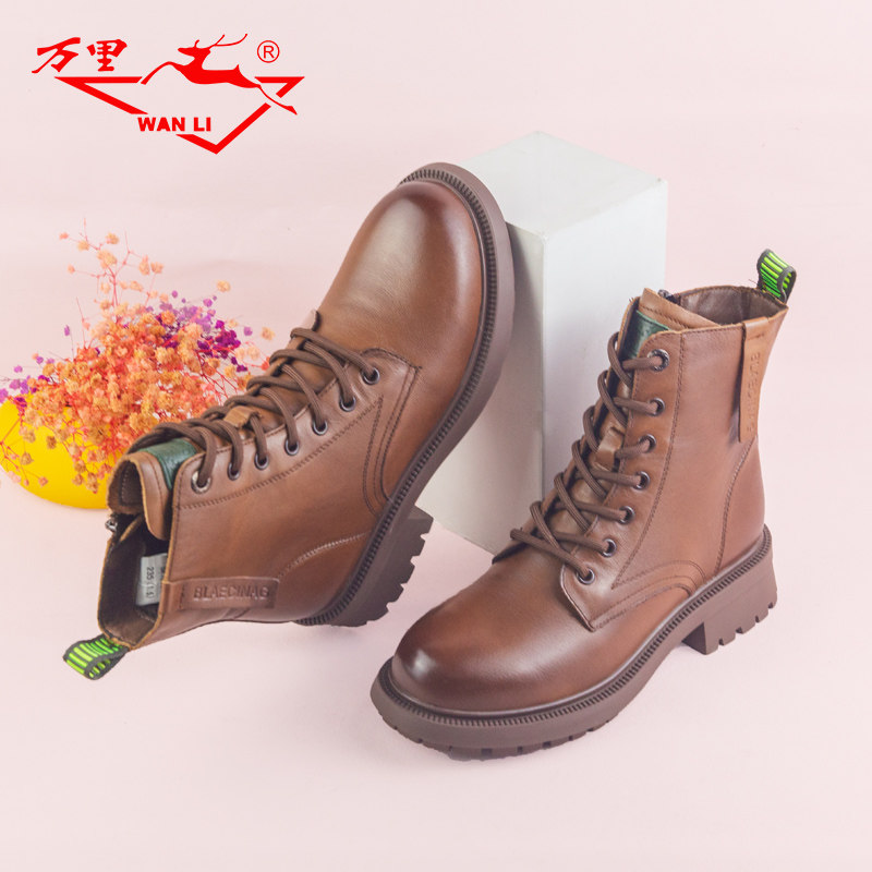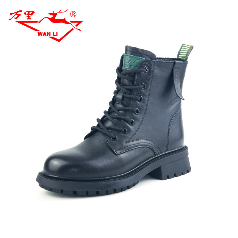 📚 万里新款真皮马丁靴舒适粗跟厚底棉鞋宽头加绒保暖女鞋SRT6855