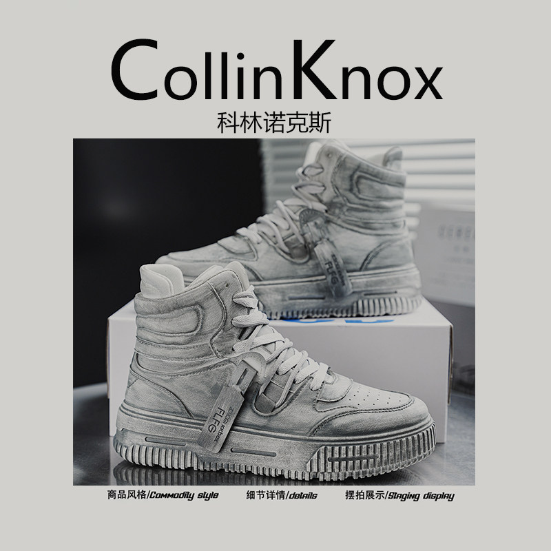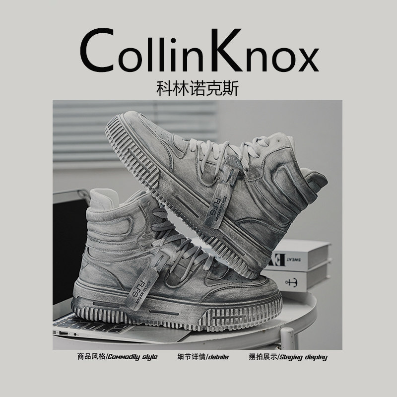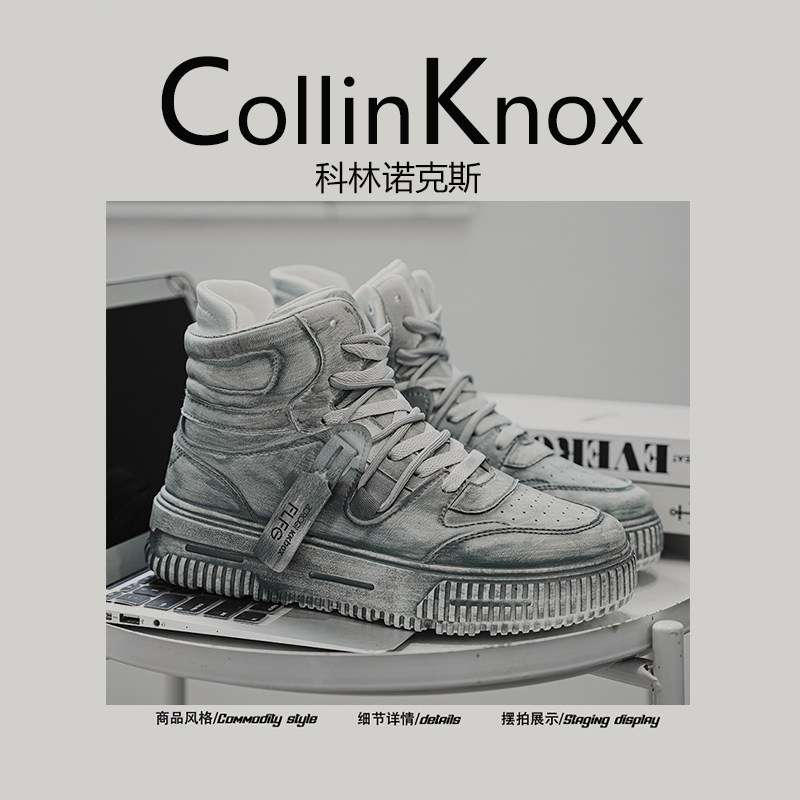 📚 【美式街头】CollinKnox2025秋季新款高帮鞋男女款做旧复古灰板鞋