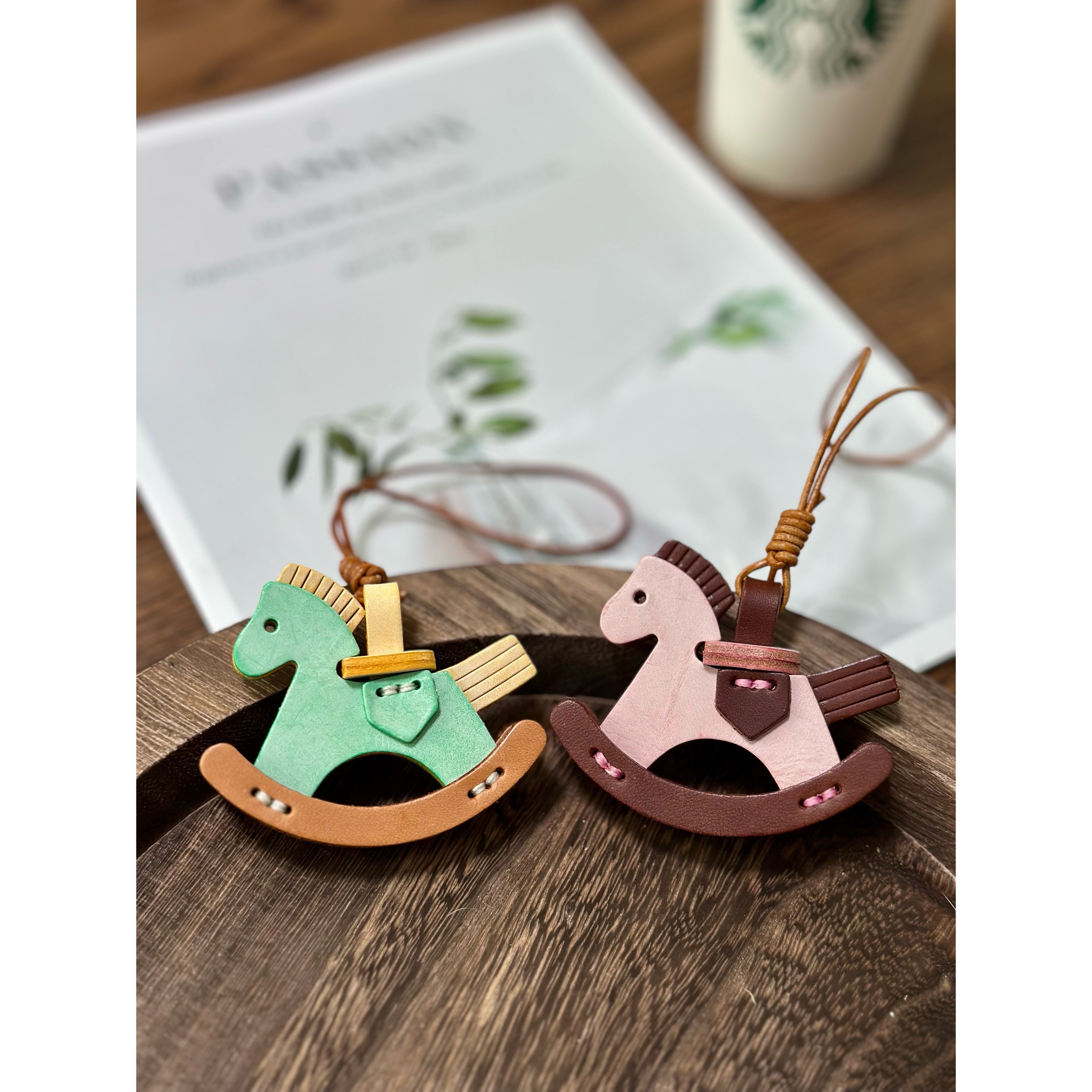 📚 摇摇马挂件真皮挂饰头层牛皮植糅皮挂饰手工缝制包包挂饰汽车挂饰