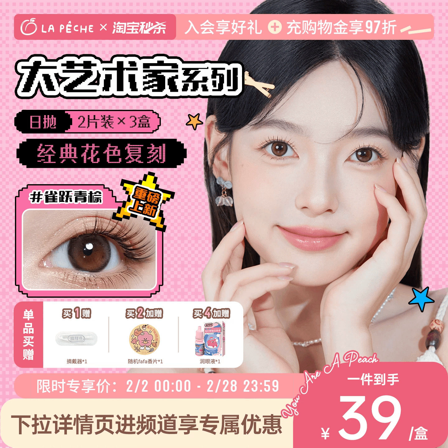 📚 拉拜诗美瞳大艺术家日抛2片*3自然棕锁边高光隐形眼镜微醺玩家