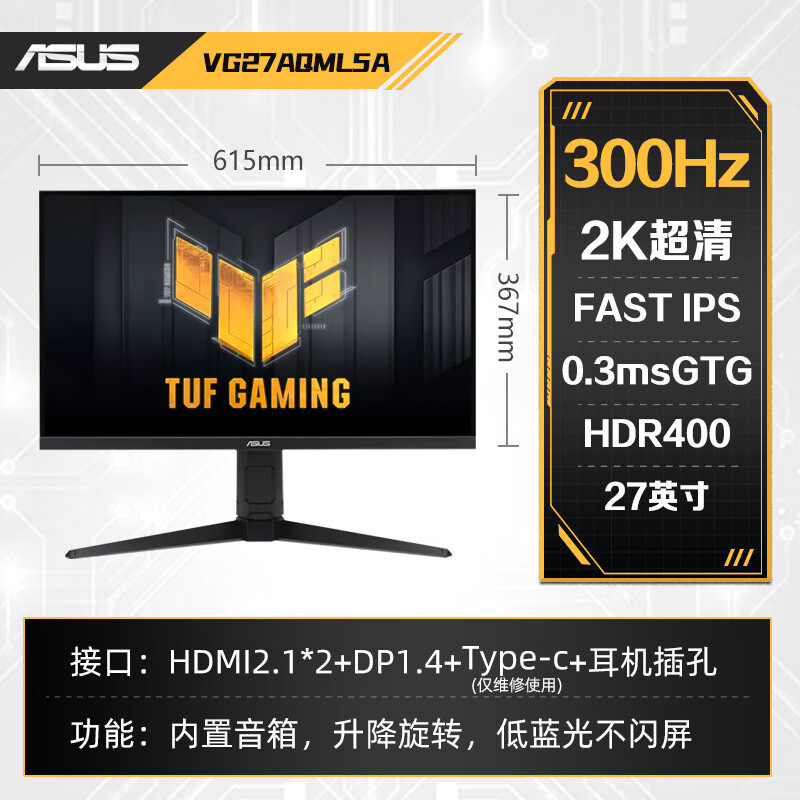 📚 华硕27寸2K 300HZ VG27AQML5A升降旋转显示器内置音响电竞IPS屏幕