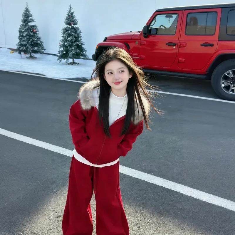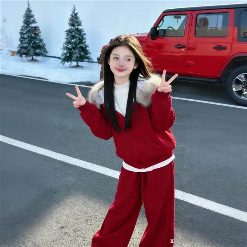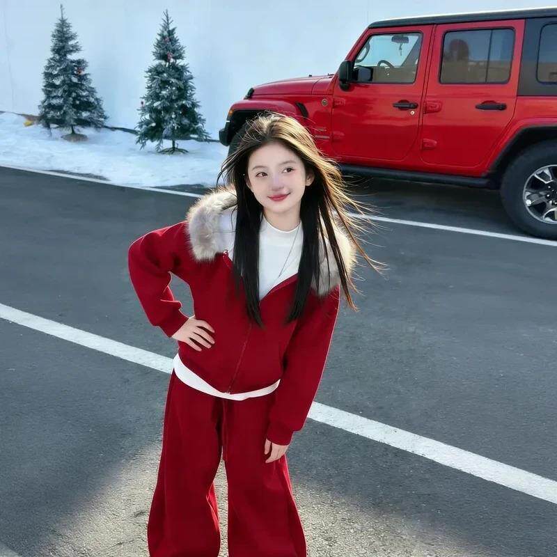 📚 凤雏商行两件式套装女童年款新年款套装休闲冬季纯色加绒加厚女