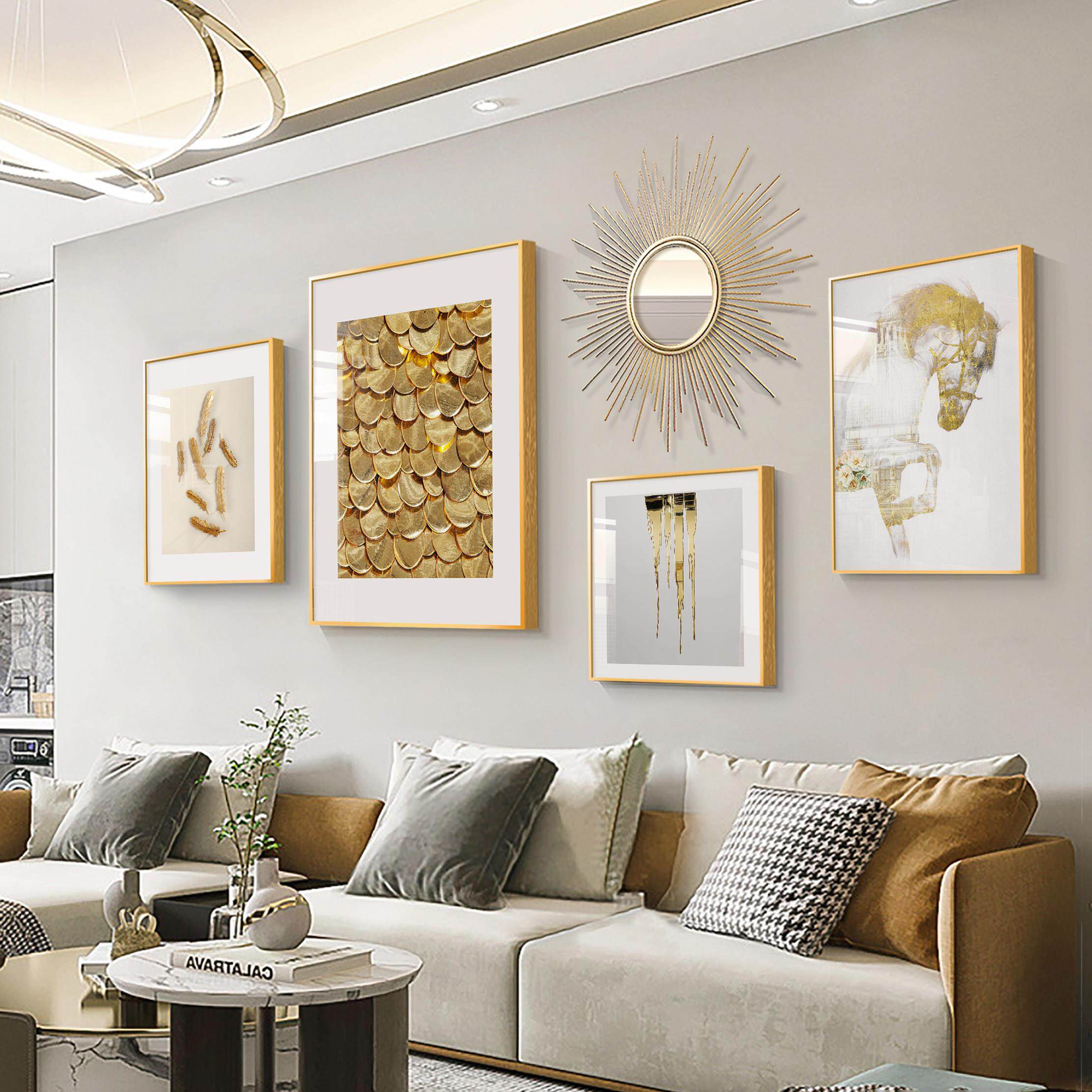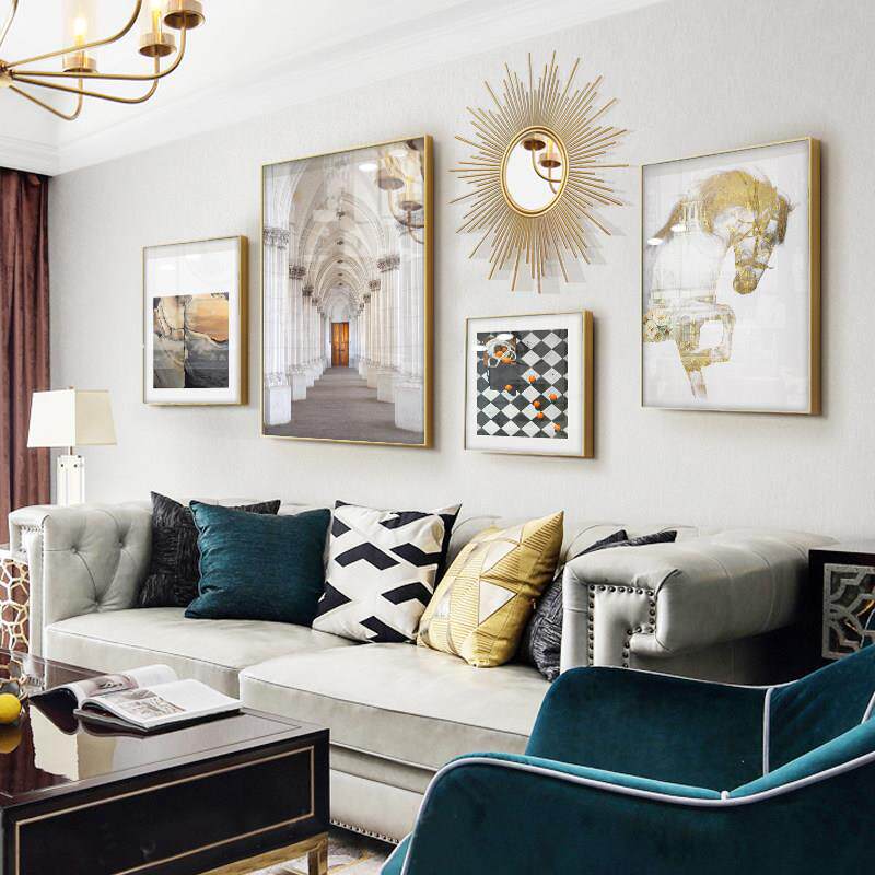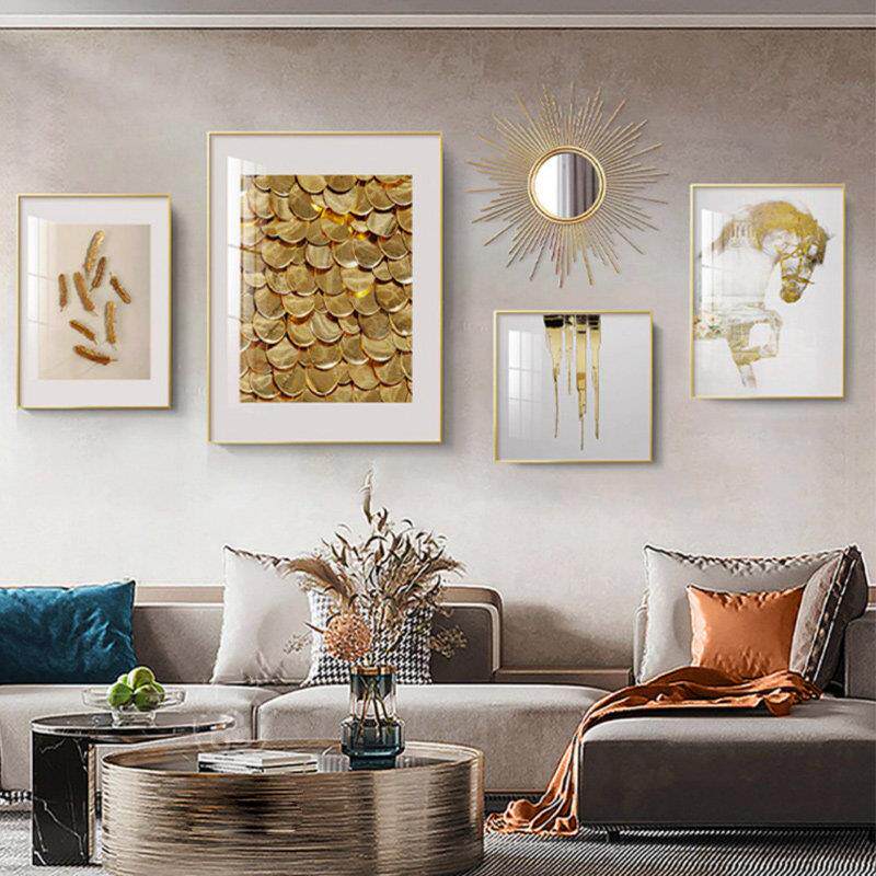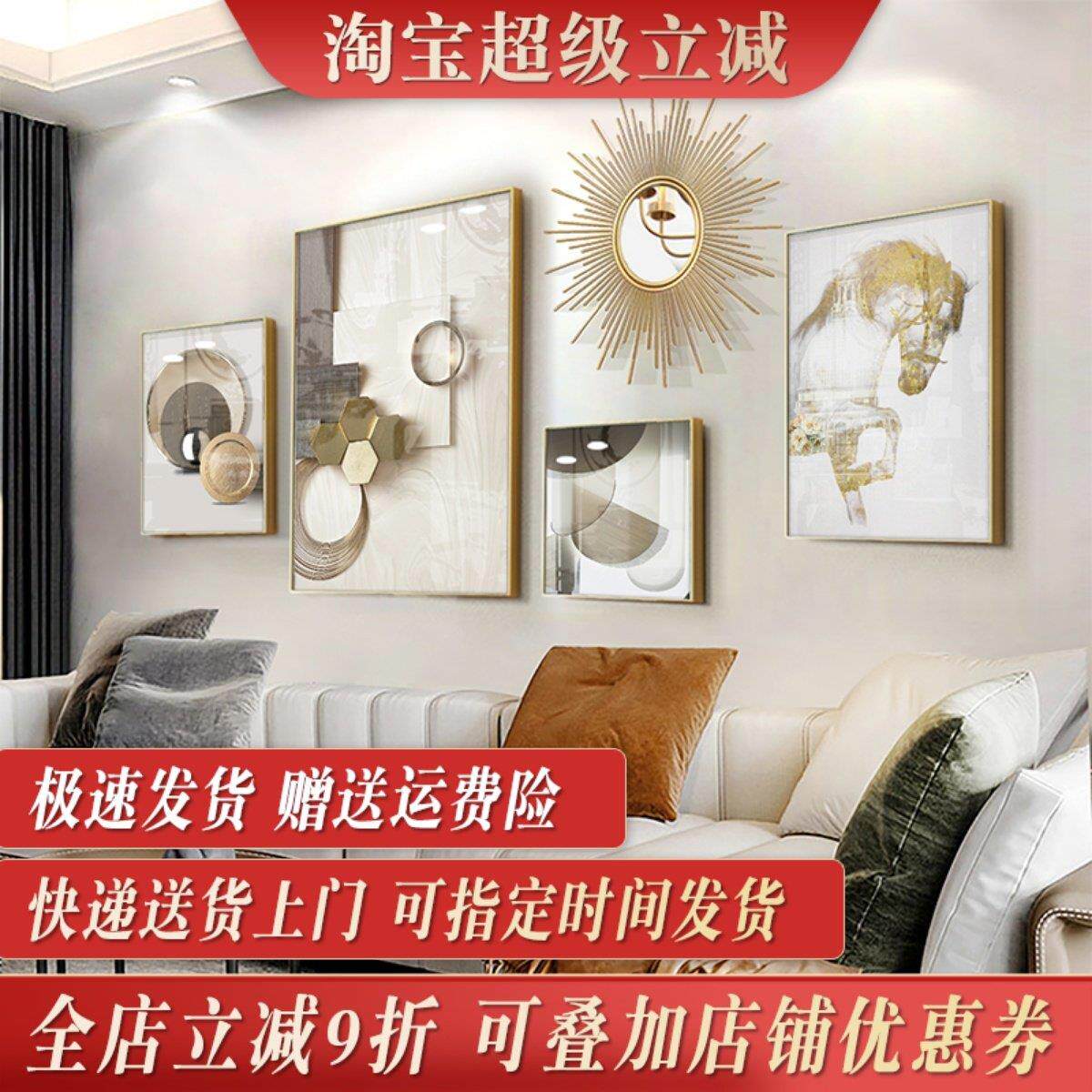 📚 现代轻奢客厅装饰画 画沙发背景墙高端档级感大气挂画 画组合金色