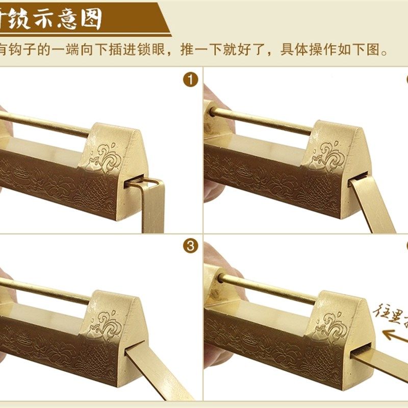 📚 仿古铜锁家用老式锁具纯铜钥匙锁迷你小钥匙锁防盗横开挂锁柜门复