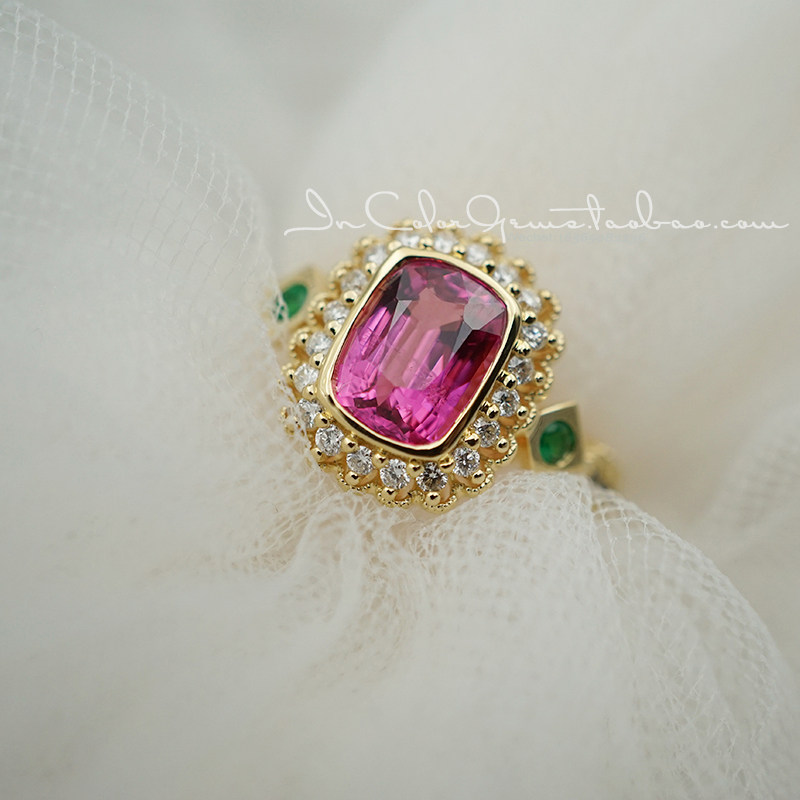 📚 恬静。/天然粉尖晶石戒指 18k金配钻 鉴赏定制/InColor彩定制
