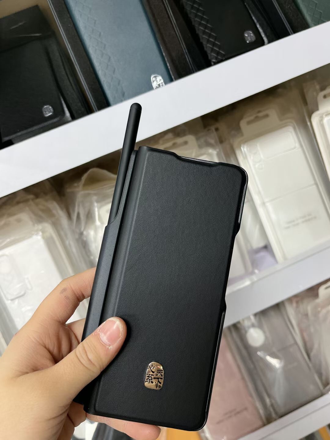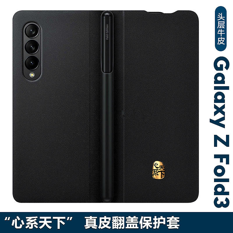 📚 适用三星ZFold3真皮W22原装同款Fold4手机壳心系天下w25翻盖皮套高档带笔Fold5 ZFold2/W21 ZFold6
